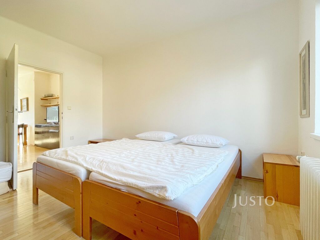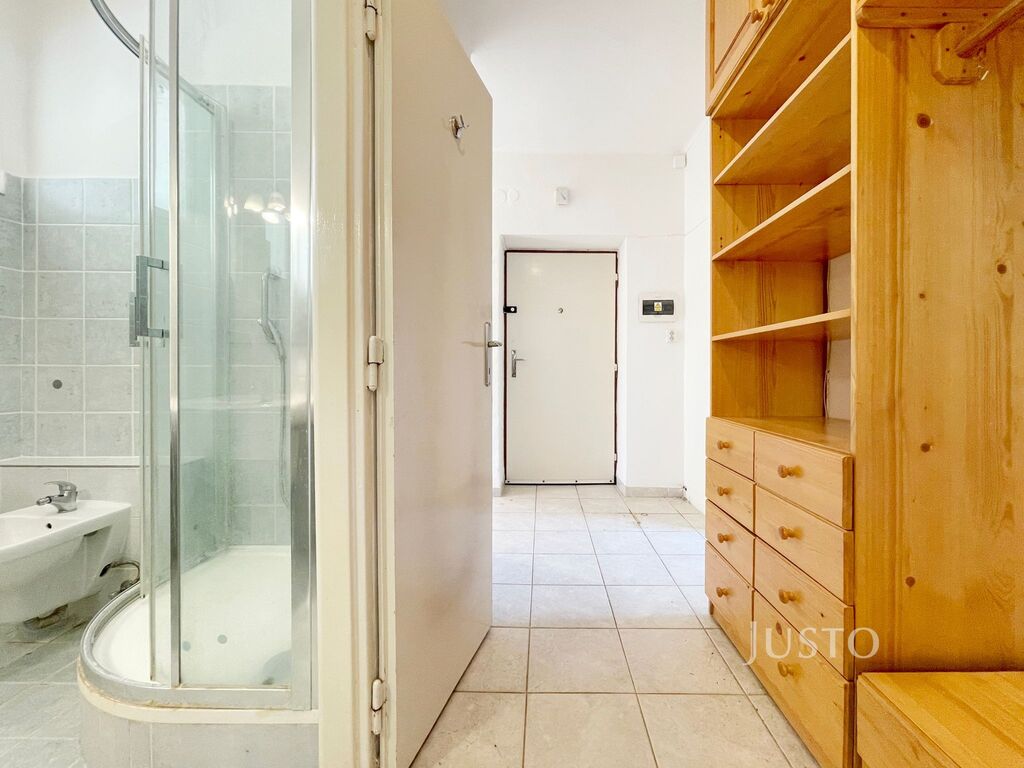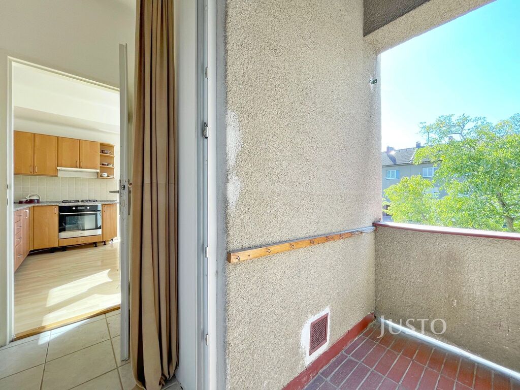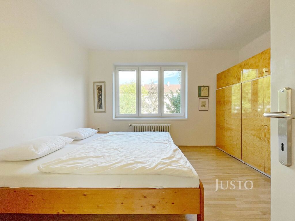Dominantou bytu je světlý a vzdušný obývací pokoj s jídelním koutem, který plynule navazuje na kuchyň s dostatkem úložných prostor. Z oken je příjemný výhled do zeleně, což poskytuje dostatek klidu a soukromí.