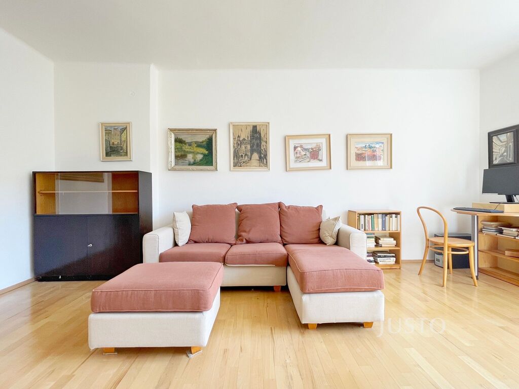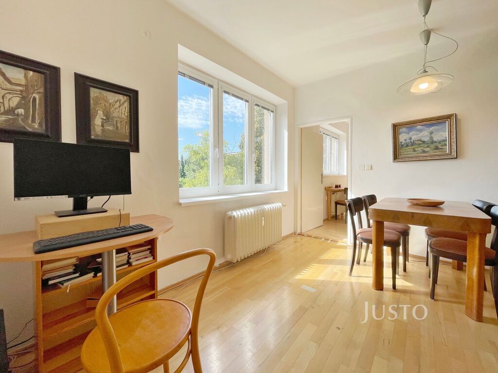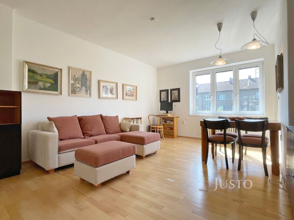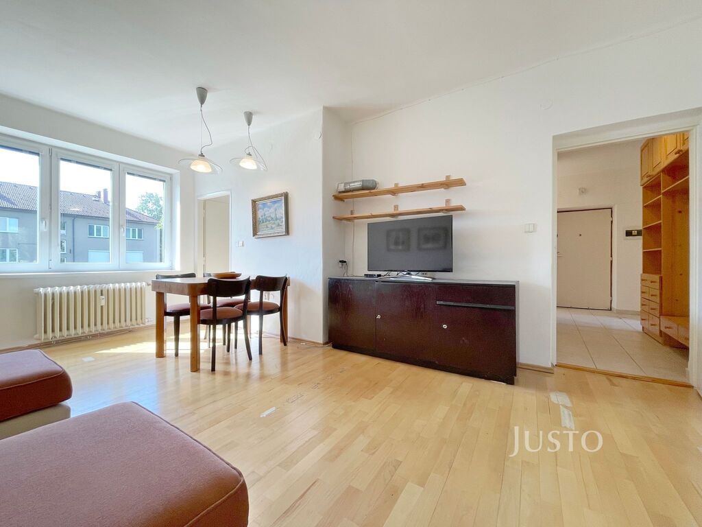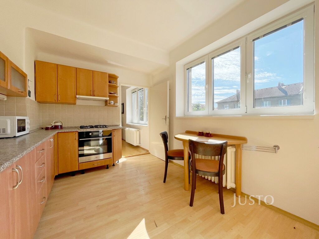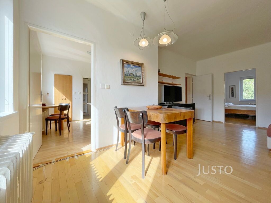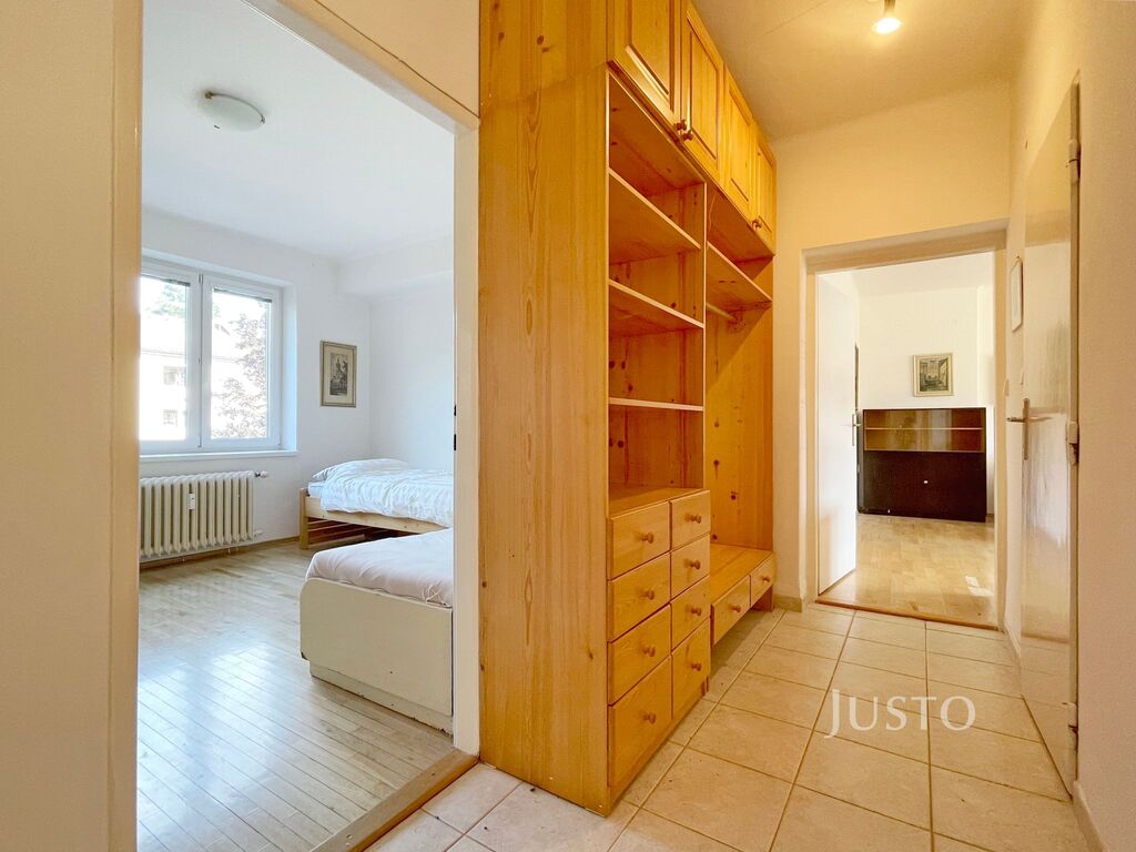 Byt nabízí, kromě prostorného obývacího pokoje, další dva samostatné obývací pokoje, prostornou vstupní chodbu s vestavěnými skříněmi a dostatek úložného prostoru v komoře, která je součástí bytu. K dispozici je rovněž sklep v suterénu domu a lodžie.