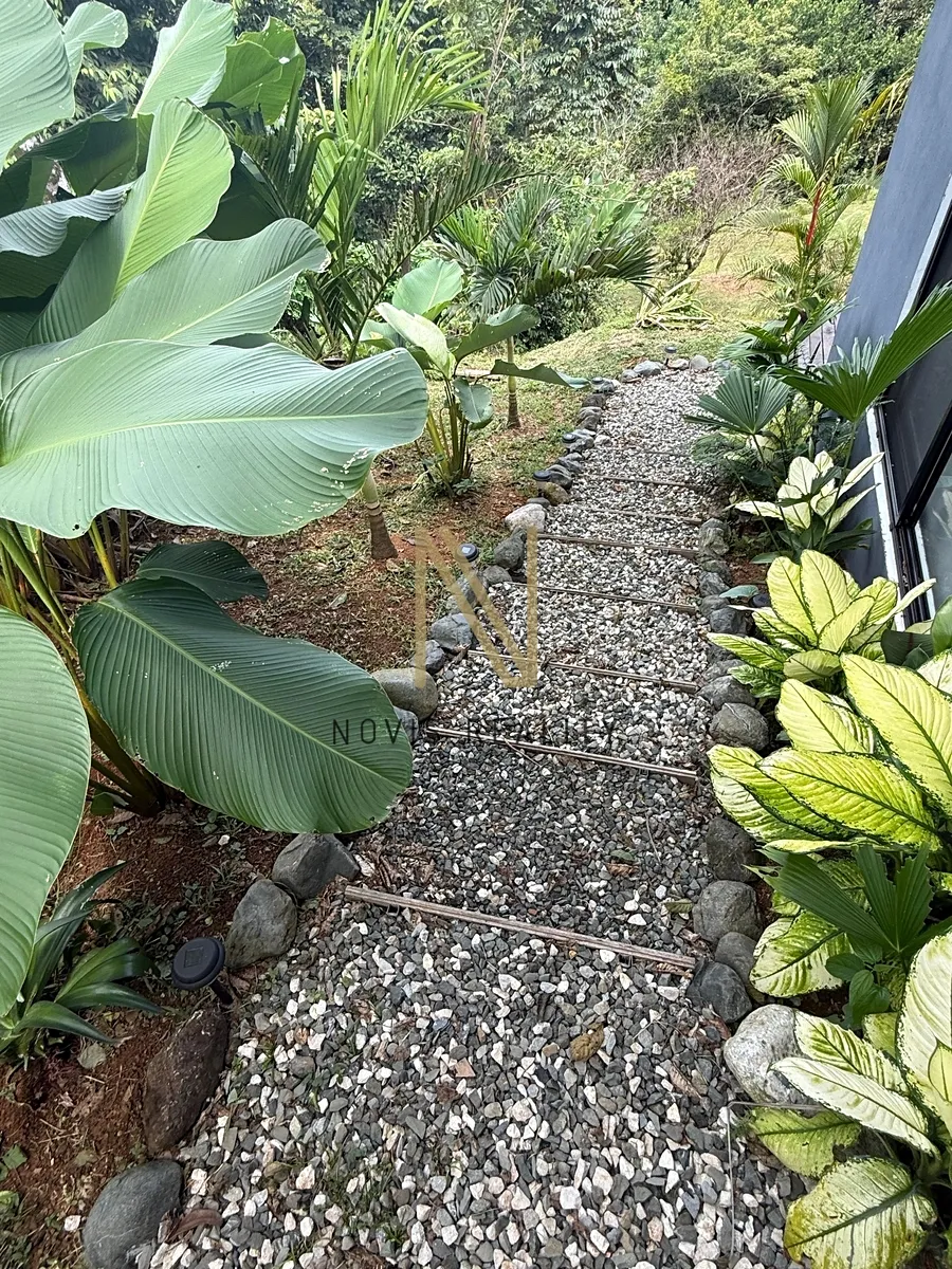 Nově postavený, moderní dvoupatrový dům s úchvatným výhledem na bujnou džungli se nachází na malebném svahu, jen pár minut od oceánu.