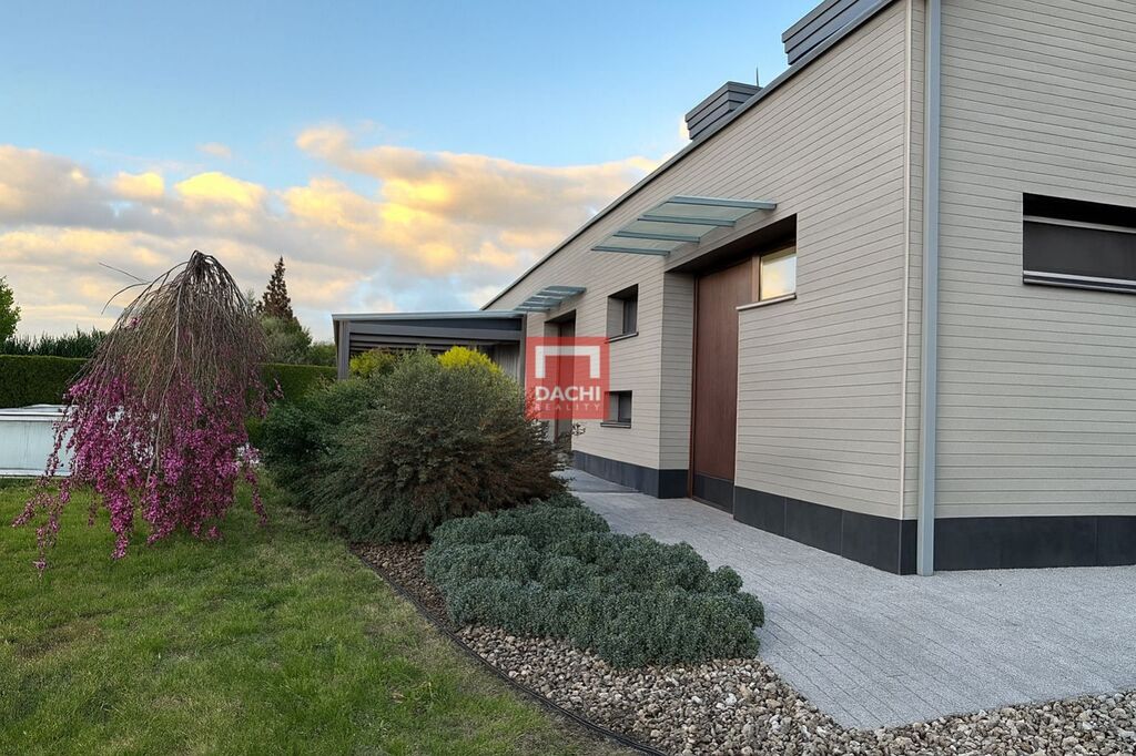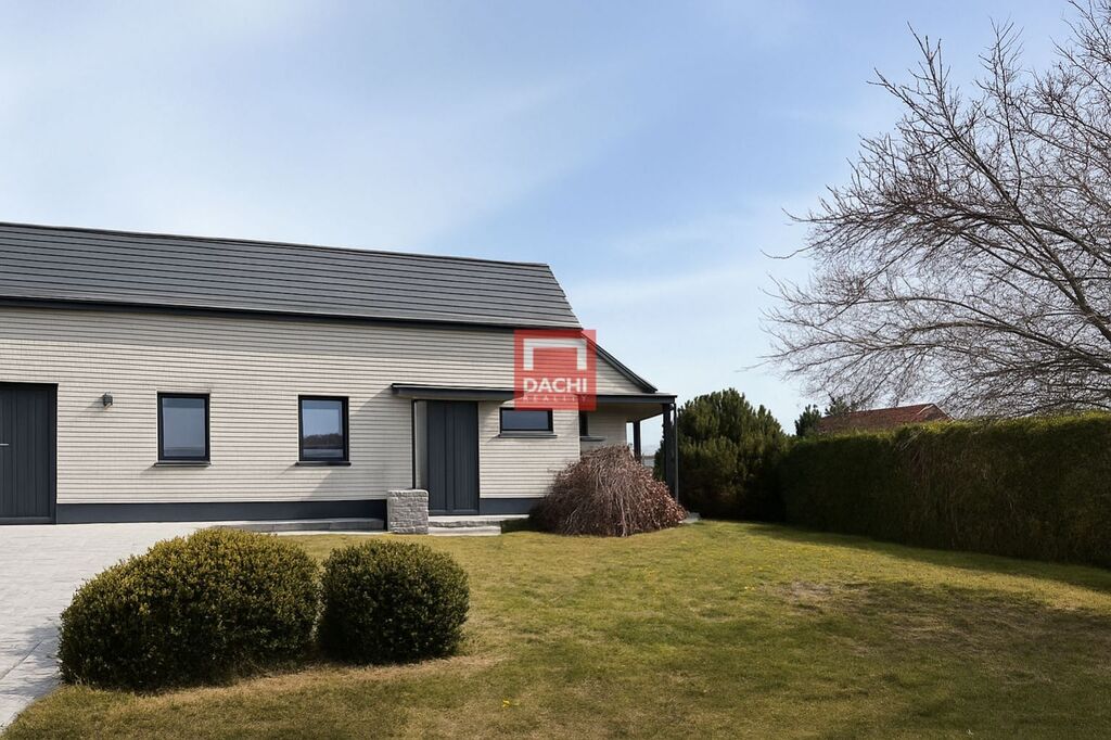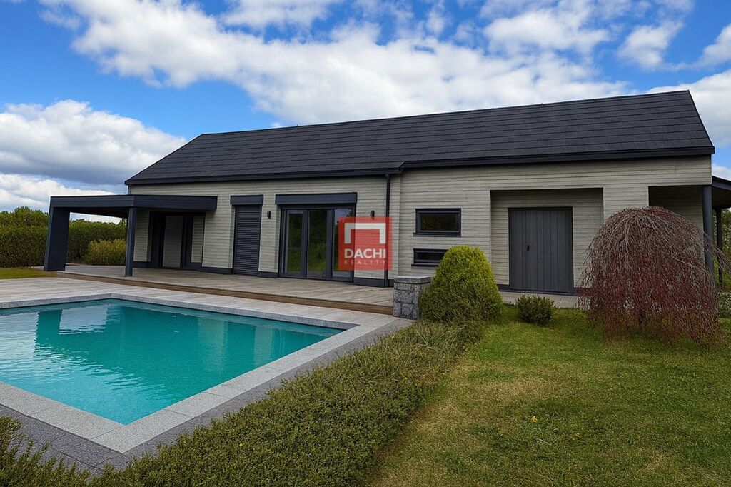 Nabízíme k prodeji zděnný rodinný dům v nadstandardním provedením, dispozičně 5+kk o užitné podlahové ploše 189m a se zahradou 847m. Dům je zateplený, přízemní, s terasou, bazénem a dvojgaráží. Na zahradě se nacházejí okrasné stromky a keře, bazén a také vlastní kopaná studna. Na sedlové střeše je betonová taška, okna jsou plastová, trojskla, všechna okna jsou vybavena předokenními elektrickými žaluziemi, které přispívají k tepelnému komfortu. Vytápění je kombinovaným plynovým kotlem do podlahového topení v celém domě. V domě je velký obývací pokoj, který je propojen s kuchyní a dále 4 samostatné pokoje (ložnice). Jedna koupelna s vanou i sprchovým koutem a dále dvě samostatné WC. Šatna, komora a technická místnost jsou samozřejmostí. Podlahy jsou z prken z masivního dřeva, dlažba, nebo koberce. Dům byl kolaudován v roce 2012. Cena na vyžádání v RK.