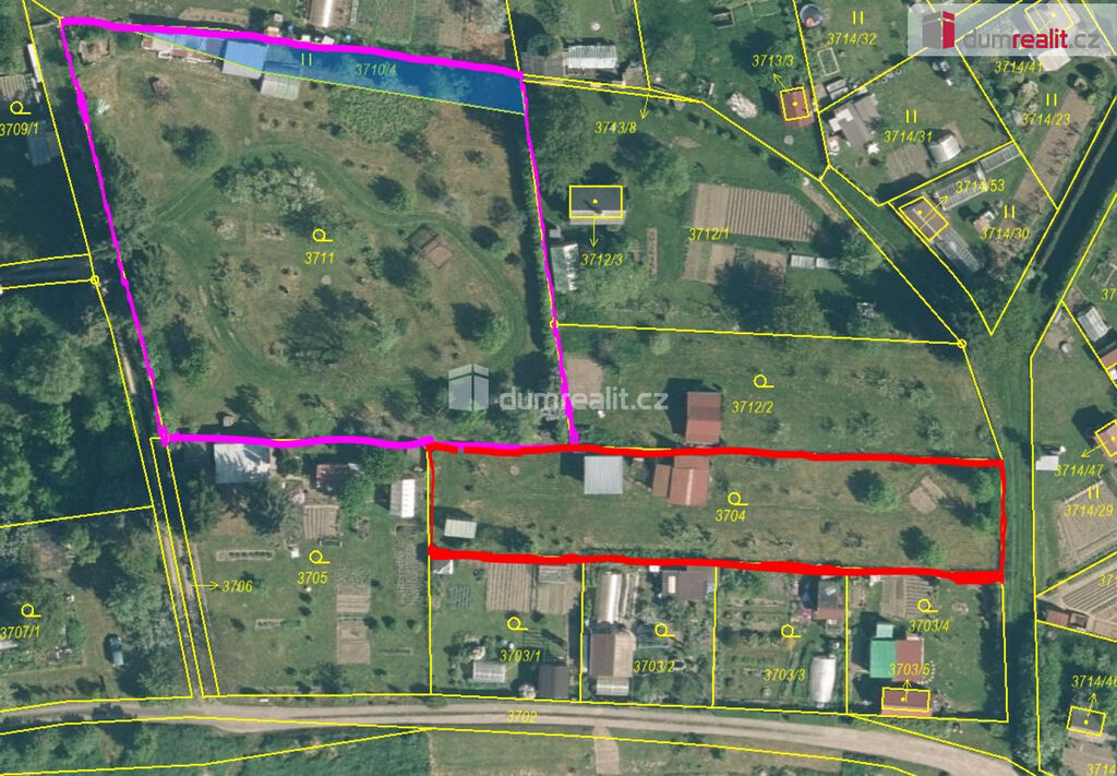 Na plánku je nabízený pozemek označen červenou barvou. Fialově označená zahrada je též - celá nebo její část určena k prodeji. Pro podrobnější informace či prohlídku neváhejte oslovit makléře. Ev. číslo: 652785.