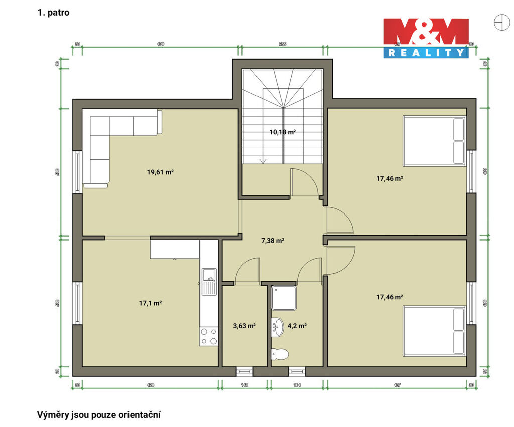 Každé podlaží tvoří samostatnou bytovou jednotku (1. NP 2+1 – 78 m², 2. NP 3+1 – 72 m²) a celková užitná plocha domu přesahuje 290 m². Dům je z větší části po rekonstrukci – má nové rozvody, zateplenou fasádu, částečně novou střechu a kvalitní izolaci proti vlhkosti. Vytápění zajišťuje plynový kotel a v přízemí navíc útulný krb. Připravená je i možnost připojení tepelného čerpadla.