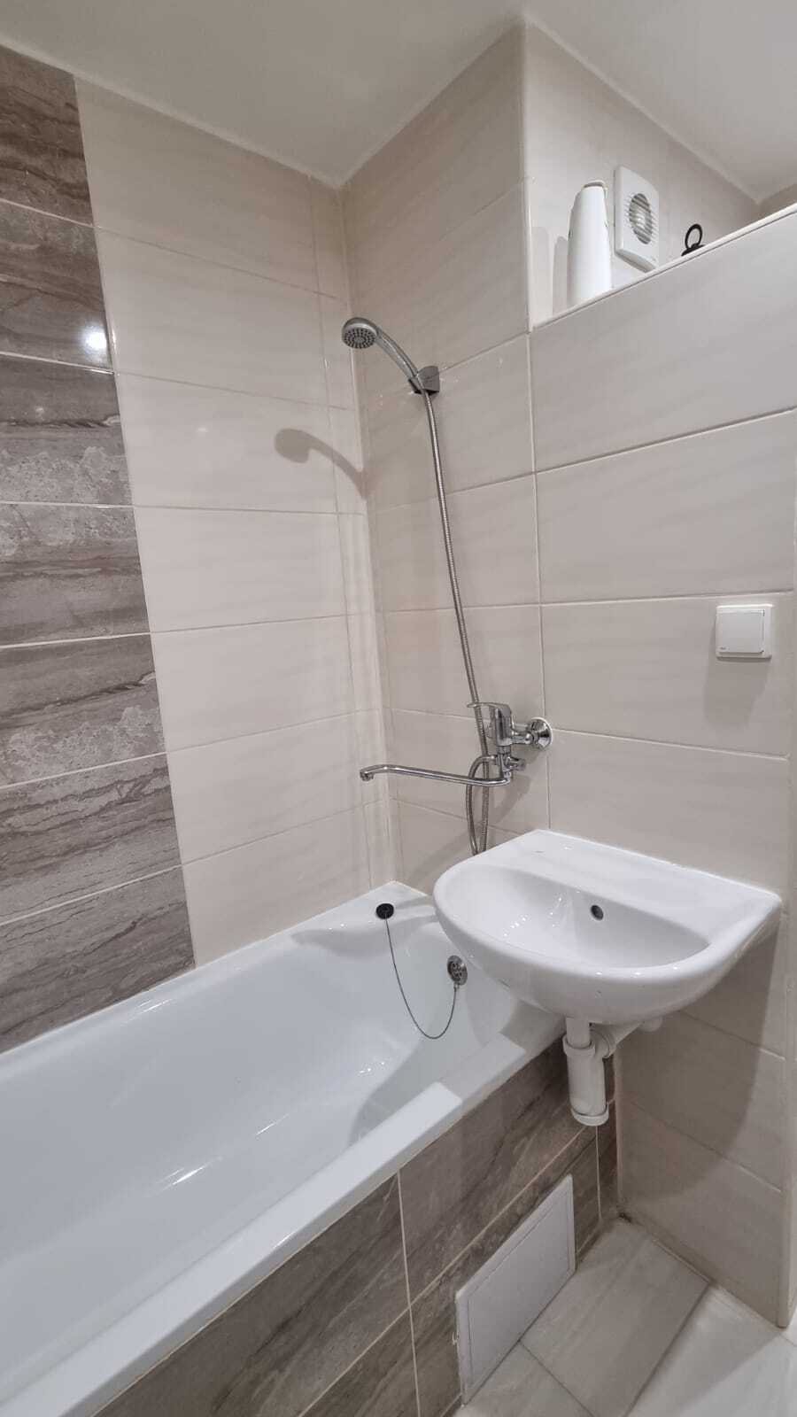 Byt prošel kompletní rekonstrukcí – zděné jádro, nové podlahy, dlažba, rozvody, omítky a interiérové dveře. Koupelna je vybavena vanou, umyvadlem a toaletou, která je součástí koupelny. Vedle vany je prostor a připojení pro automatickou pračku. Nová kuchyňská linka disponuje novým elektrickým sporákem s troubou a digestoří.