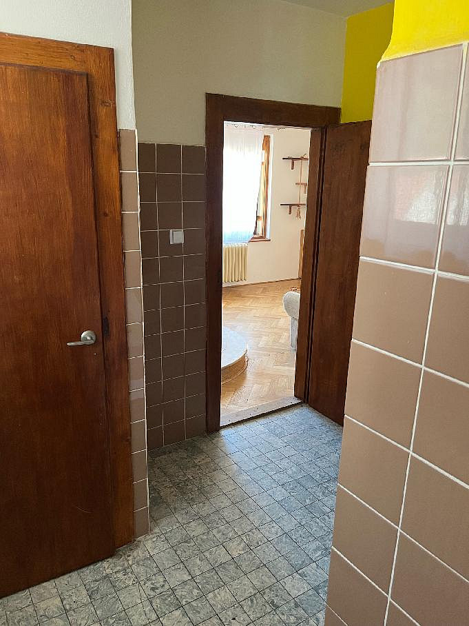 V další části suterénu je z ulice přístupná velká garsoniéra s koupelnou a WC. Tato část domu se samostatným vchodem, je ideální pro komerční užití, např. obchod, ordinace a pod.