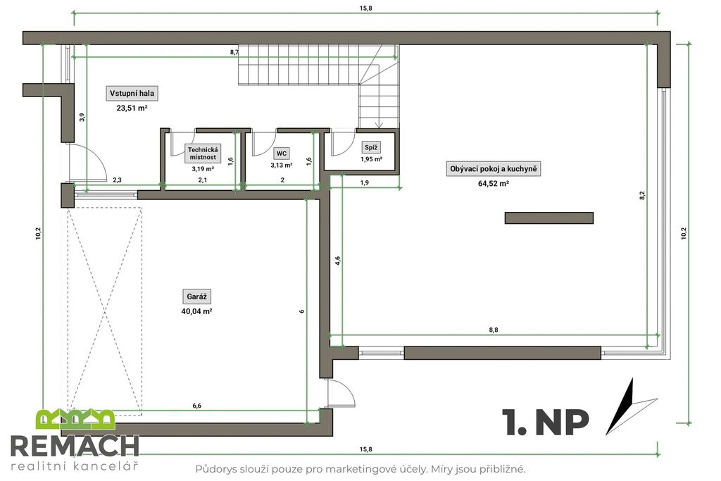 • 40 m² dvougaráž (s nízkým spádem 1,5 %, vhodná i pro supersporty)