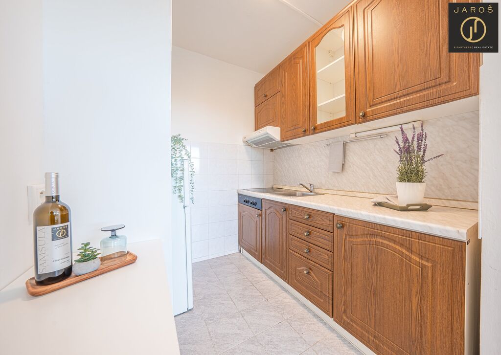Byt se nachází v dobře udržovaném panelovém domě po revitalizaci, která zahrnovala výměnu oken a renovaci fasády. Hlavní obytná část bytu (21 m²) nabízí dostatek místa pro rozdělení na různé funkce a velká okna ve vyšším patře zajišťují dostatek světla a tepla. Lodžie o rozloze 7 m², orientovaná na jihozápad, poskytuje klid a soukromí. Praktická komora (1 m²) na společné chodbě rozšiřuje úložný prostor.