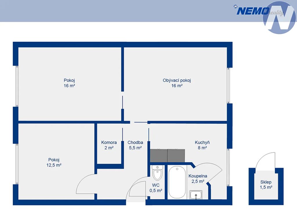 Byt prošel modernizací v roce 2017. Velkou výhodou je zděné jádro, oddělená koupelna s vanou a toaleta umístěná samostatně, což zvyšuje komfort každodenního bydlení.