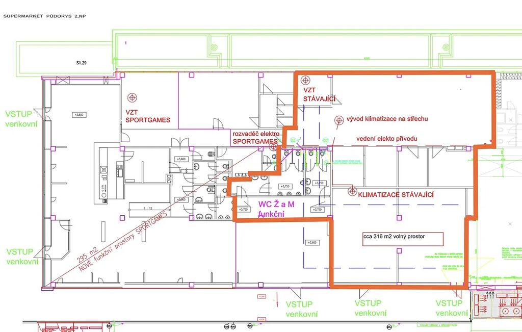 V současné době je prostor využíván jako sklad herny, je však určen ke kompletní rekonstrukci, což dává novému nájemci možnost upravit si dispozici i vzhled dle vlastních potřeb.