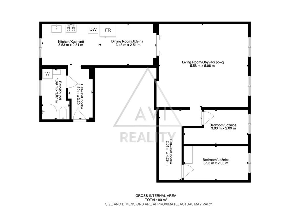 Byt prošel částečnou úpravou – z jedné původní místnosti byly vytvořeny dvě menší ložnice. ( viz plánek a fotografie).