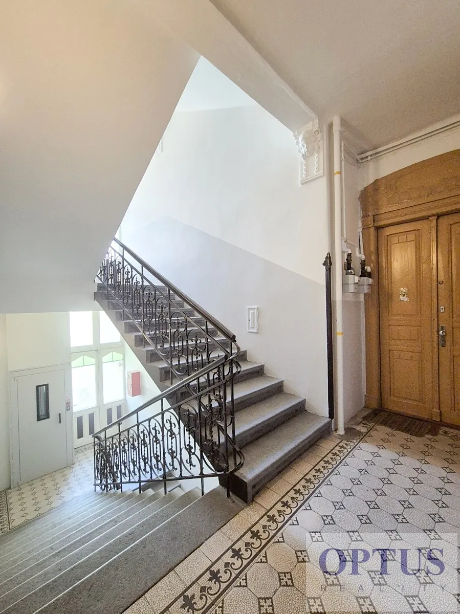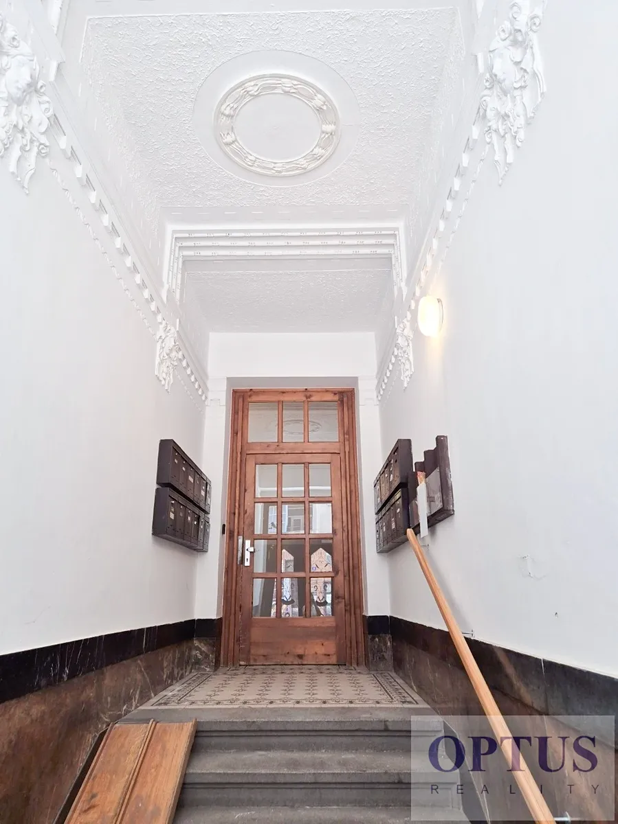 Nabízíme částečně zařízený nadstandardní byt 2 + kuchyňský kout o velikosti 42,68 m2, situovaný ve 2. nadzemním podlaží reprezentativního secesního domu s výtahem. Byt je orientovaný na severozápad s výhledem do dvora.