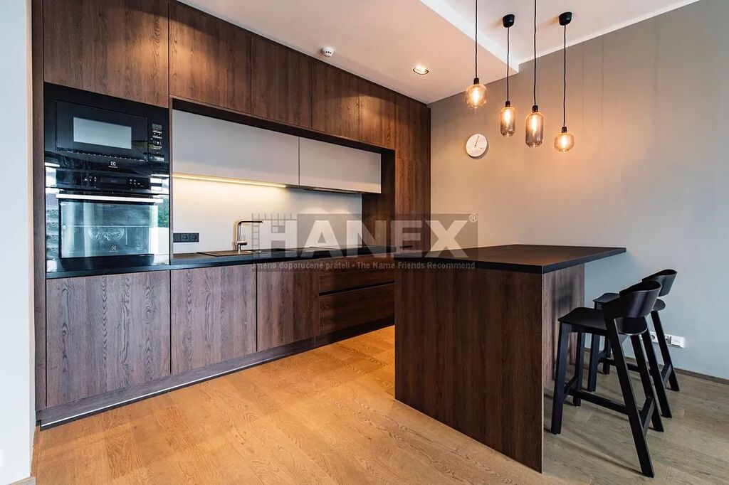 Moderní zařízený byt s krásným výhledem do zeleně. Světlý a prostorný byt 2+kk s terasou v luxusní rezidenci v Praze 4 – Hodkovičkách. Příjemné bydlení v zeleni v blízkosti centra, snadná dostupnost významných sportovních a volnočasových center – golf, tenis, squash, cyklostezky a trasy pro in–line bruslení u Vltavy. Moderní byt o velikosti 63,8 m2 se nachází ve 3. patře a skládá se z prostorného obývacího pokoje (35 m2) s kuchyňským koutem a vstupem na terasu (14,5 m2). Dále je zde ložnice, koupelna a úložná komora. Plně vybavená kuchyňská linka, vestavěné skříně v ložnici a chodbě. Orientace bytu na západ do zeleně. Byt je osazen hliníkovými okny s předokenními žaluziemi, nadstandardní provedení vnitřních mezibytových příček, které zaručují zvukový komfort bydlení, videotelefon s napojením na recepci. Podlahové vytápění v celé jednotce, dřevěné parketové podlahy od rakouského výrobce, zařizovací předměty v koupelně – Villeroy and Boch, byt je připojen na recepci a centrální pult ochrany. K bytu náleží parkovací místo v garáži a sklep. V budově je recepce s ostrahou 24 hodin, kamerový systém, společenská místnost, ping–pong, vinotéka k využití pro rezidenty.