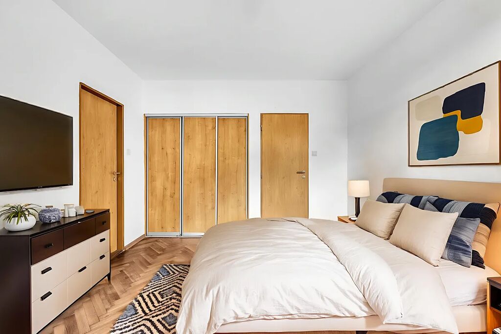 Součástí bytu je vlastní zahrada o výměře 336 m², ideální pro odpočinek, dětské hry nebo menší zahradničení.