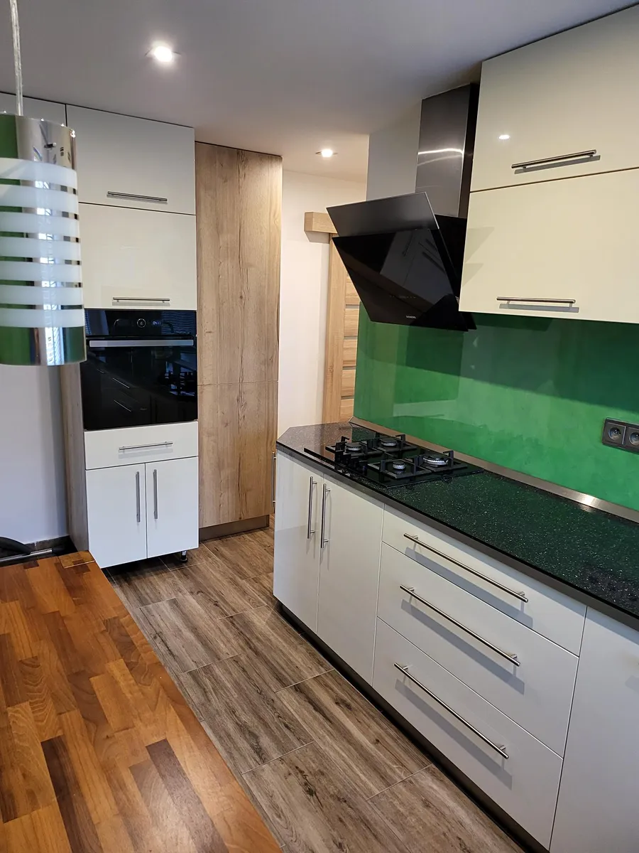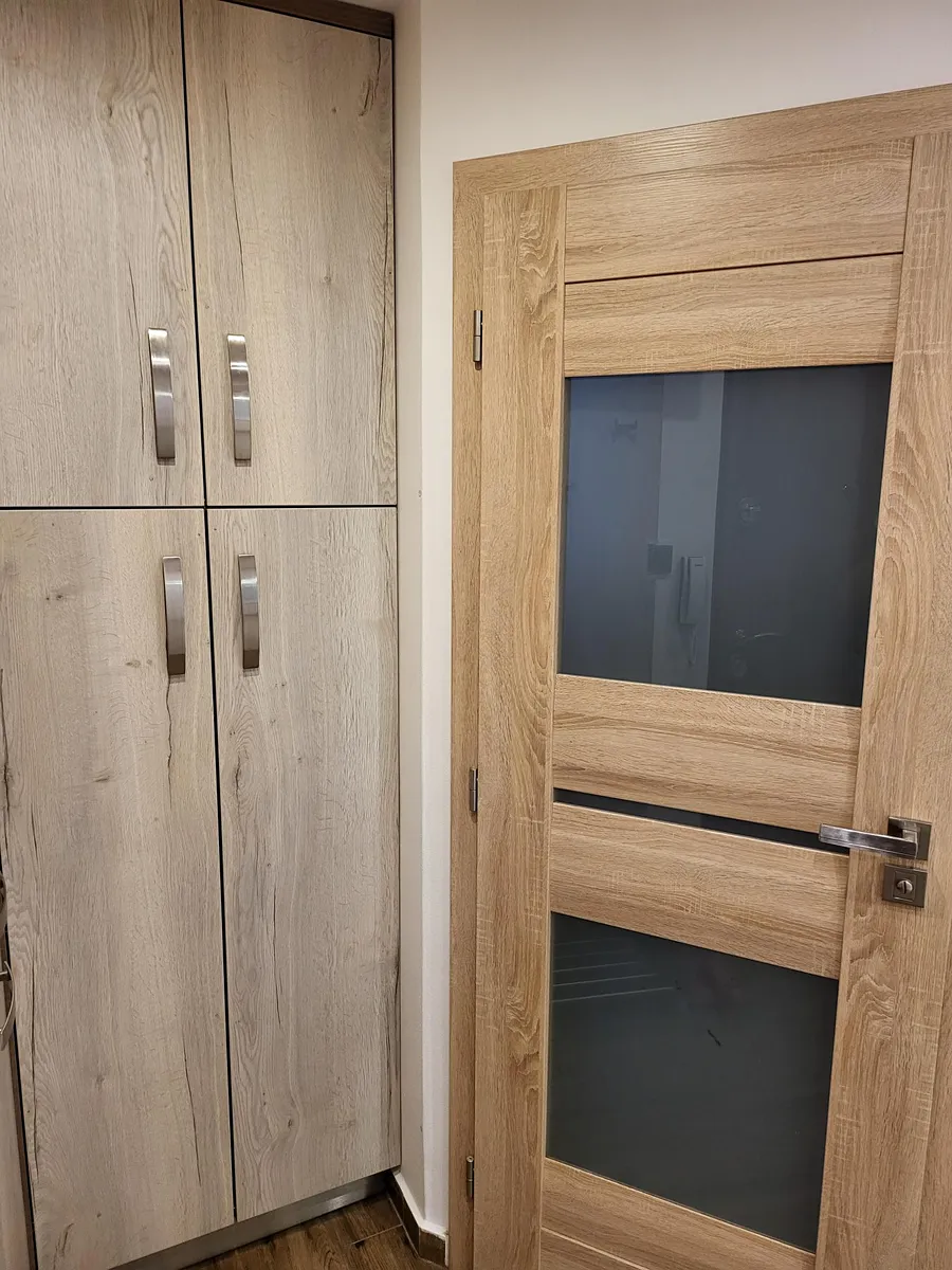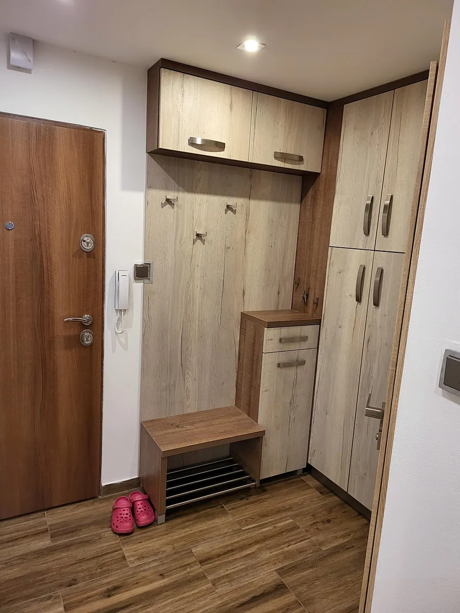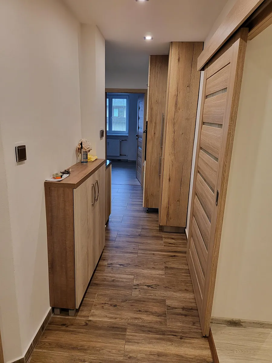 V pokojích jsou vestavěné skříně, kuchyně je vybavena kuchyňskou linkou včetně spotřebičů.