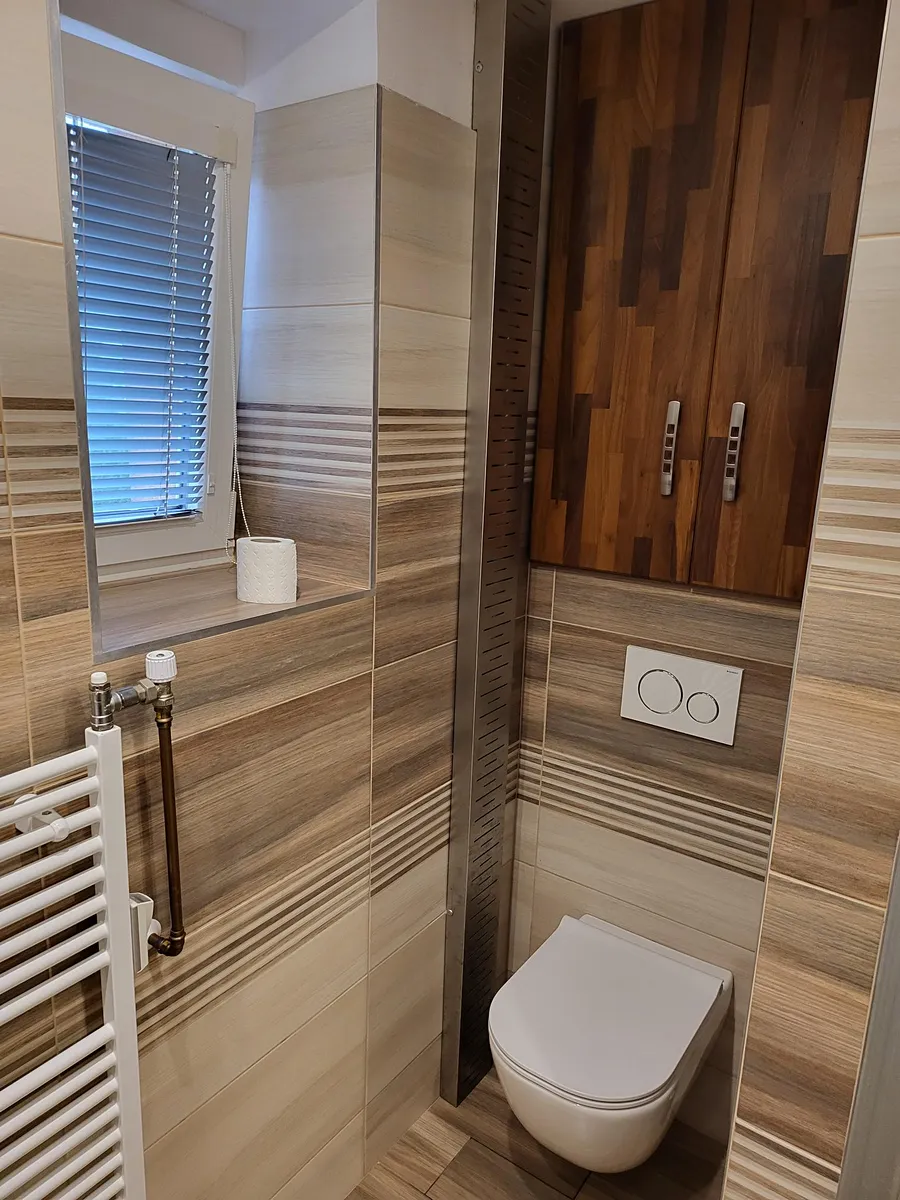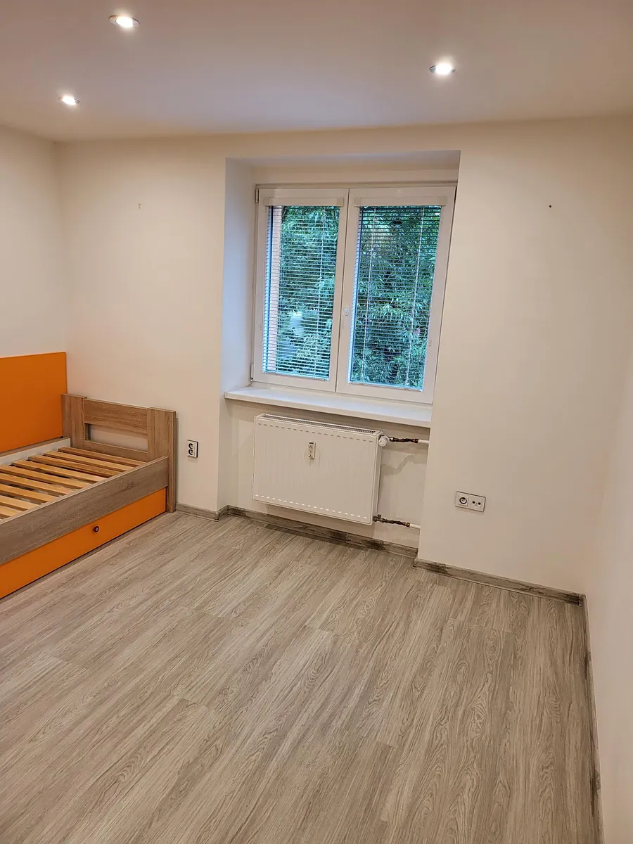 Byt se skládá ze vstupní chodby, koupelny s pračkou, samostatného WC, obývacího pokoje, kuchyně, ložnice a dětského pokoje.