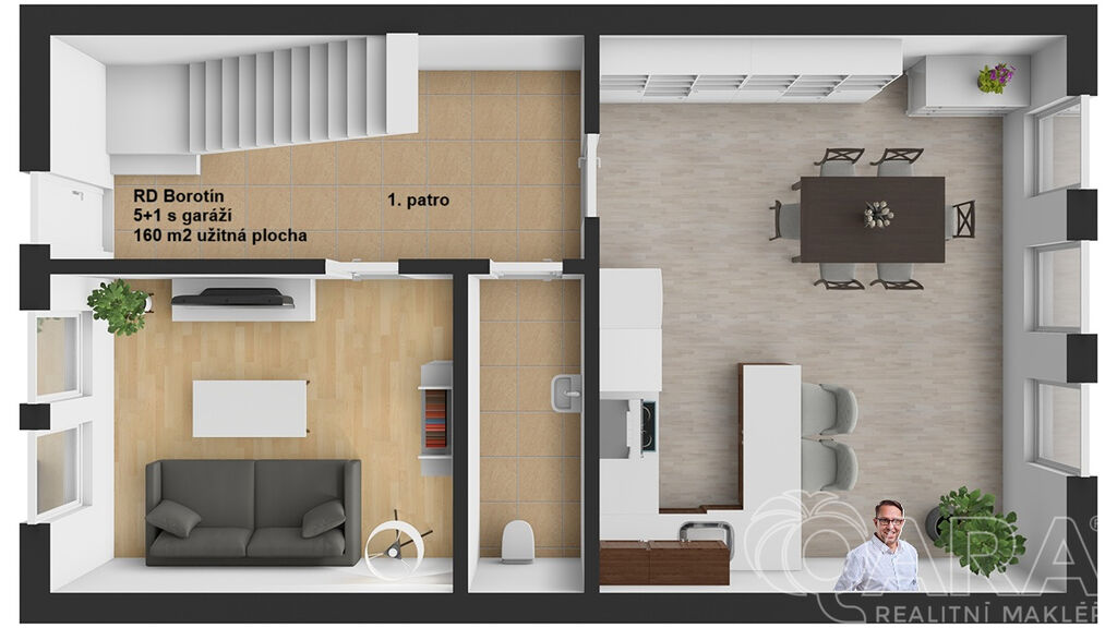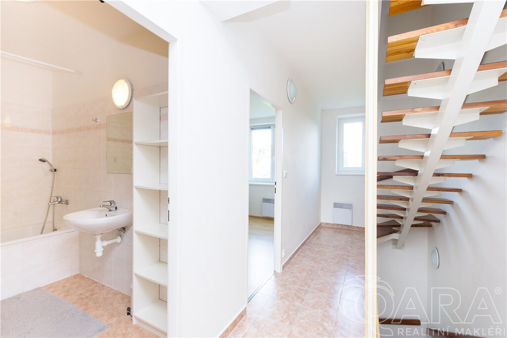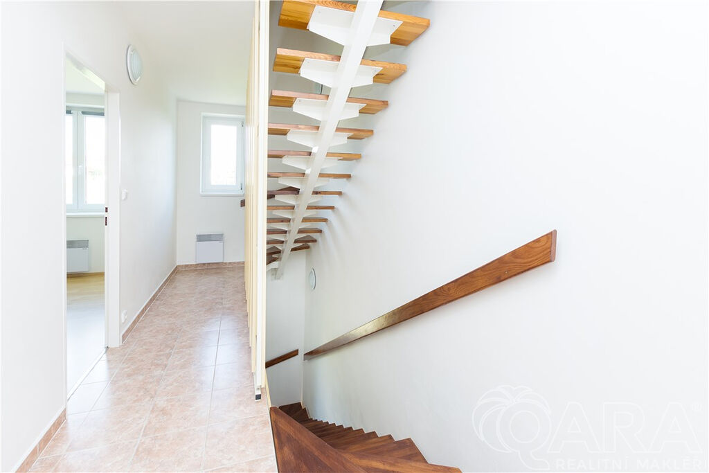 • Přízemí: Prostorná garáž (26 m2), zádveří (4,40 m2), chodba (1,80 m2), komora (1 m2), sklad (2,90 m2) a schodiště (4,70 m2) vedoucí do prvního patra.