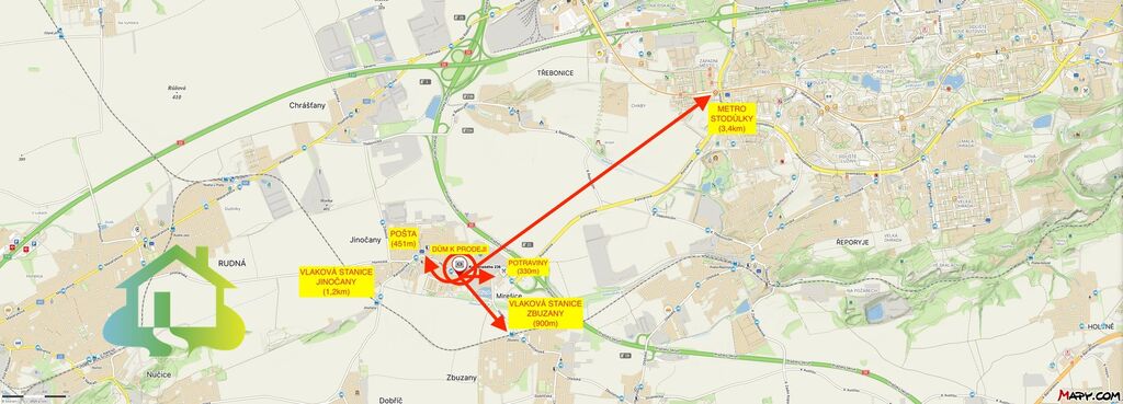 Obec Jinočany nabízí základní občanskou vybavenost, širší služby jsou v dosahu v Rudné nebo na Praze-Zličín. Zastávka MHD je cca 500 m od domu, nájezd na Pražský okruh pouhé 2 km.