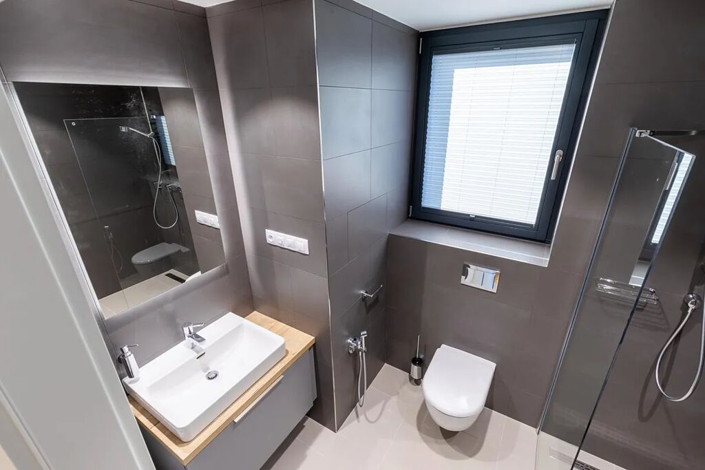 High-quality design and equipment, window blinds, wooden windows with triple-glazed insulation, large-format tiles and floor tiles in the bathrooms, Laufen Pro sanitary ware, bidet showers, oak floors with underfloor heating, above-standard door height of 2.1 m, videophone, chip access to the building.