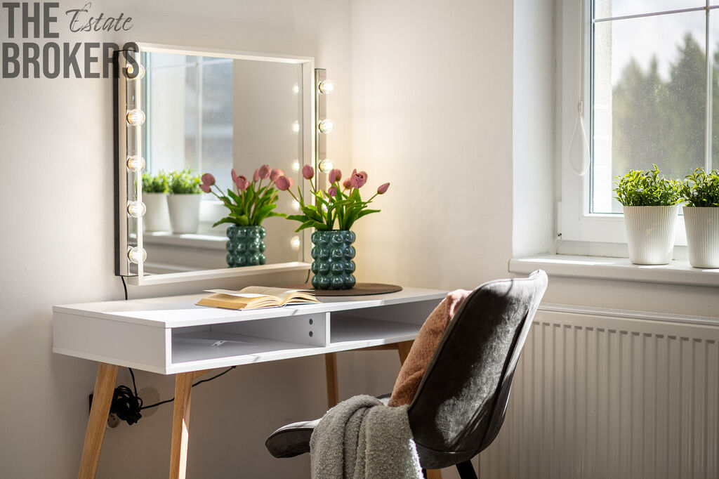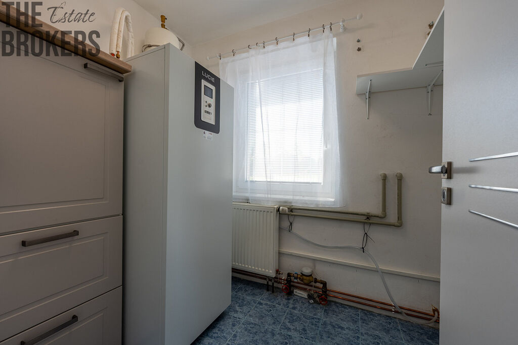 Při vstupu do domu vás přivítá útulná vstupní místnost, která navazuje na chodbu. Odtud se otevírá srdce celé domácnosti – prostorný obývací pokoj propojený s kuchyní s novými spotřebiči. Je to místo, kde se potkává rodina, kde se tvoří vzpomínky a kde vás denně zahřeje nejen teplo domova, ale i atmosféra tohoto prostoru. Z obývacího pokoje se přímo vychází na krytou terasu o velikosti 15 m², která poskytuje nádherný výhled do zahrady a stává se přirozeným prodloužením obytného prostoru. Terasa je ideálním místem pro letní snídaně, večerní posezení s přáteli či chvíle klidu s knihou v ruce.