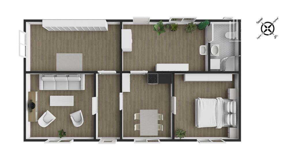 Nabízíme k prodeji přízemní rodinný dům o dispozici 3+1 s užitnou plochou 68 m².
