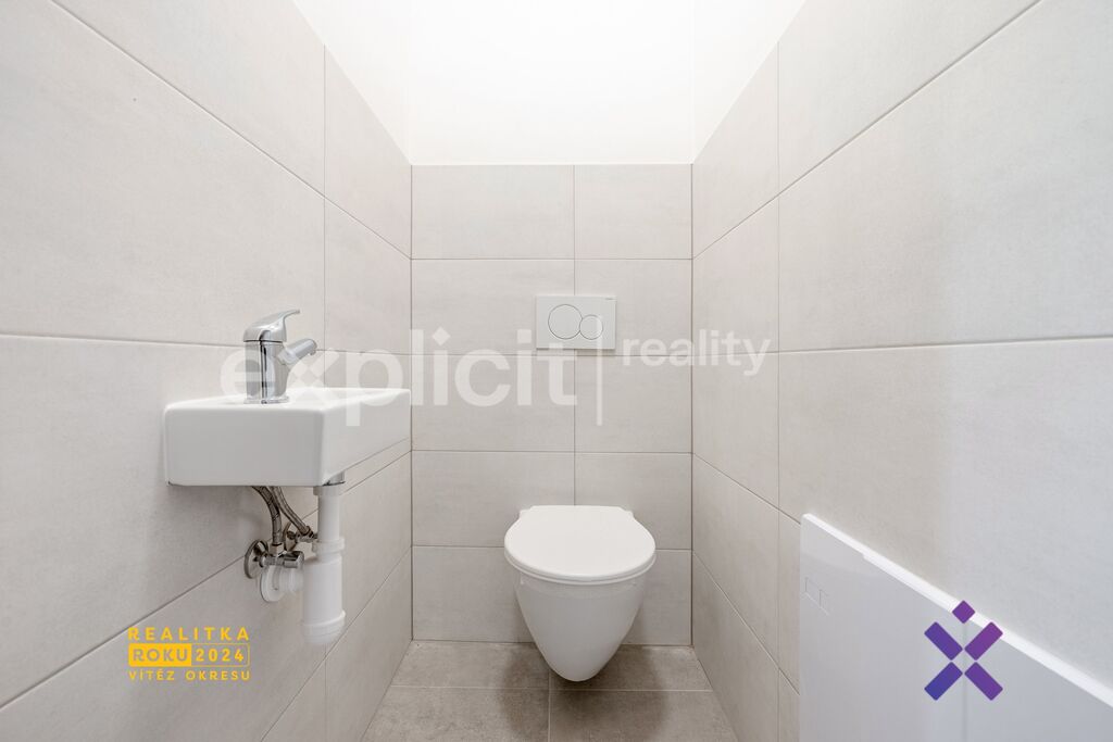 Součástí bytu je také samostatná toaleta a zděná koupelna s vanou. Nechybí ani dostatek prostoru pro pračku a sušičku.