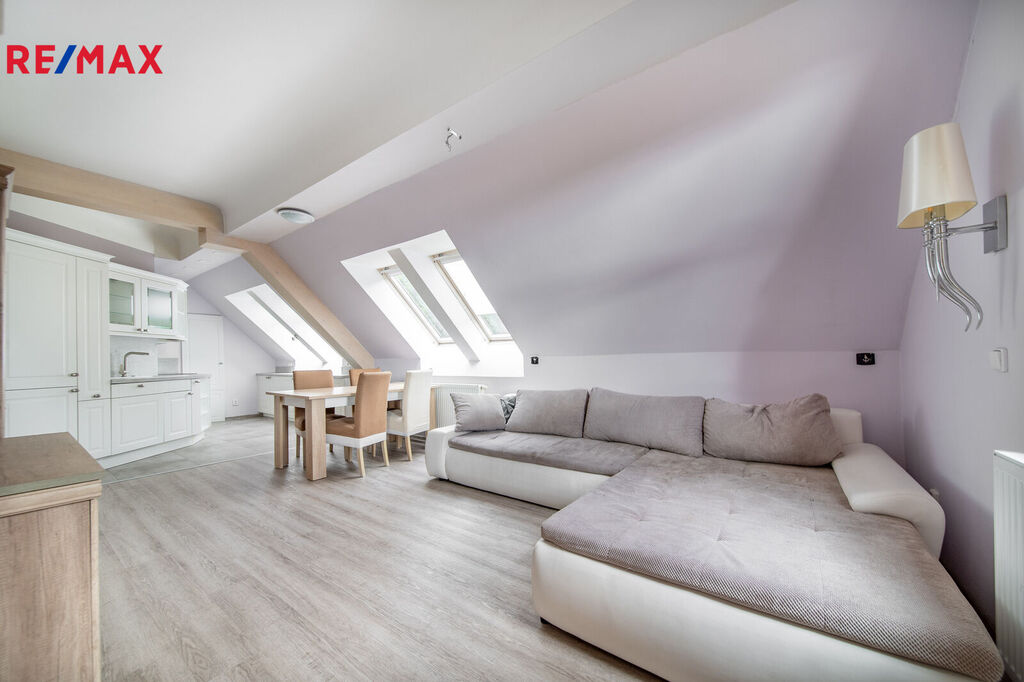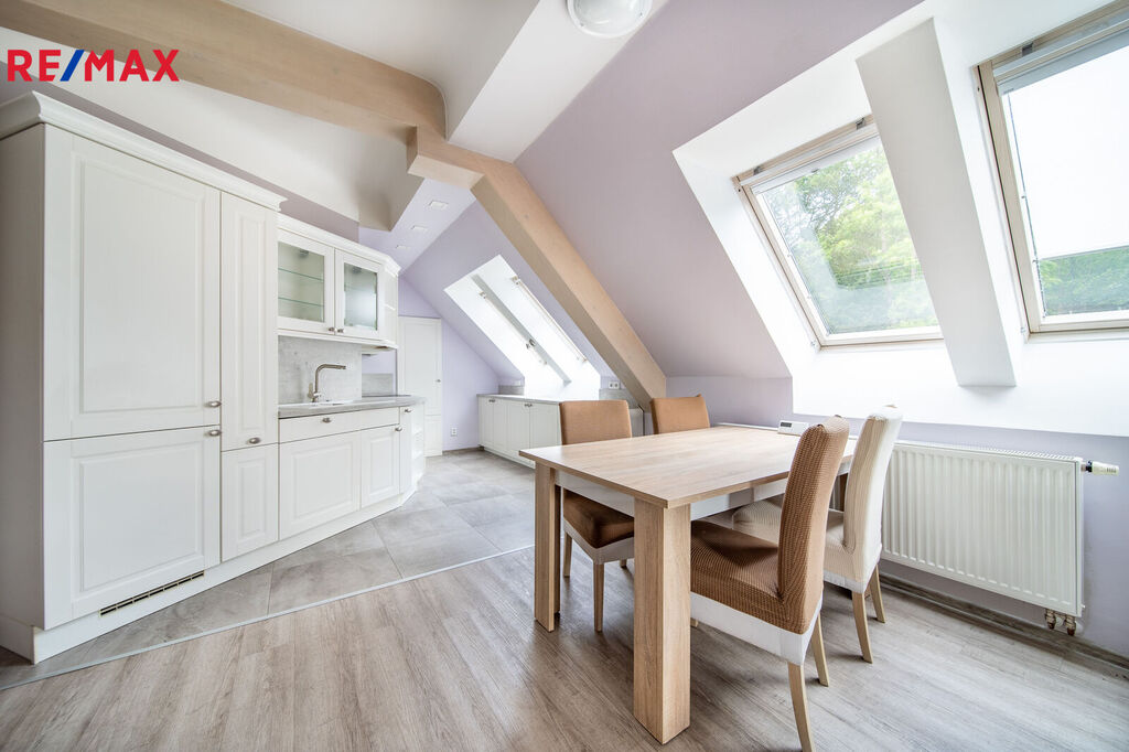 Byt o rozměrech 144,5 m² je plně vybavený, včetně kuchyně s linkou na míru a vestavěnými spotřebiči. Ohřev vody a vytápění je zajištěno plynovým kotlem s radiátory a elektrickým podlahovým topením, které je samostatně regulovatelné pro maximální komfort.