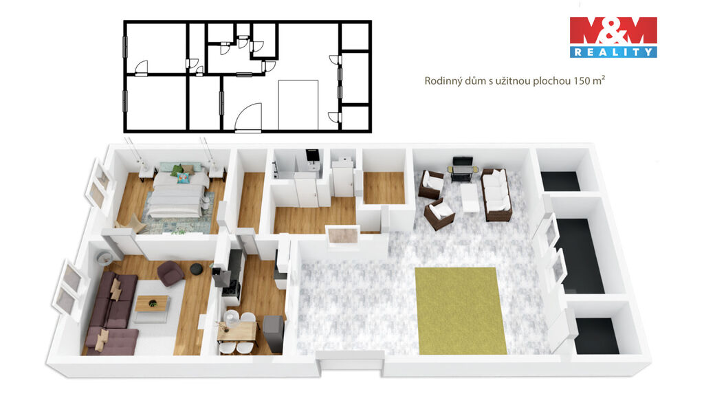 - Zastavěná plocha 132m2 je nebytový prostor 64m2 (pergola, skladovací prostory-dílna a sklípek). Užitná plocha 68m2. Jsou to dva pokoje (17,3 a 19,3), kuchyň (12,3), technická místnost, kde je i příprava na pračku (4,6), vstupní prostor (5,8), koupelna (2,8), komora s oknem - lze jako další místnost (5,1).