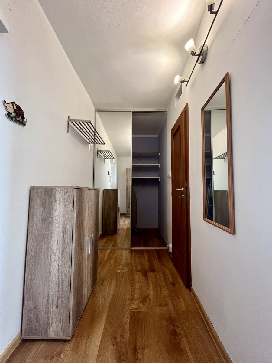 V předsíni je skříň a komoda a také vestavěná šatní skříň.