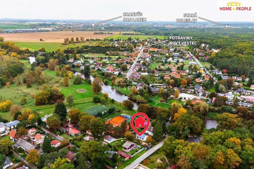Dům se nachází v klidné lokalitě obce Káraný v těsné blízkosti řeky Jizery, ale není v záplavové zóně. Perfektní dojezdová vzdálenost do Prahy, 20 min. autem na Černý Most. Do Brandýsa nad Labem je to pouhých 10 min. autem a autobus č. 666 jezdí každou hodinu. V obci se nachází mateřská školka, tato lokalita vhodná pro mladé rodiny s dětmi.