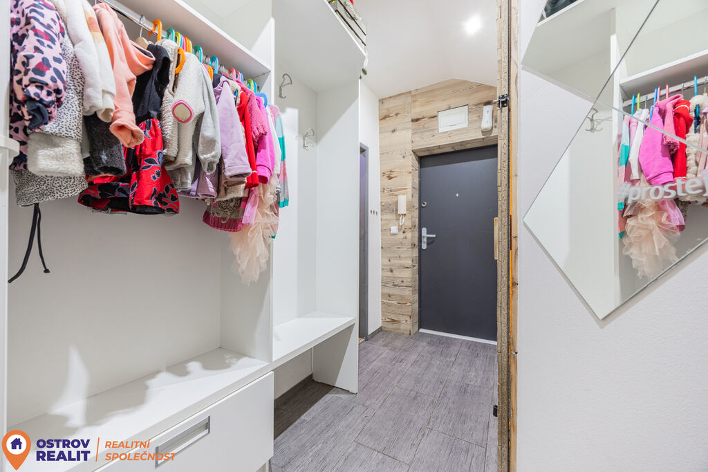 Byt se prodává částečně vybavený – v dětském pokoji zůstává spací patro, které lze dle potřeby zachovat nebo demontovat, čímž vznikne další plnohodnotná ložnice.