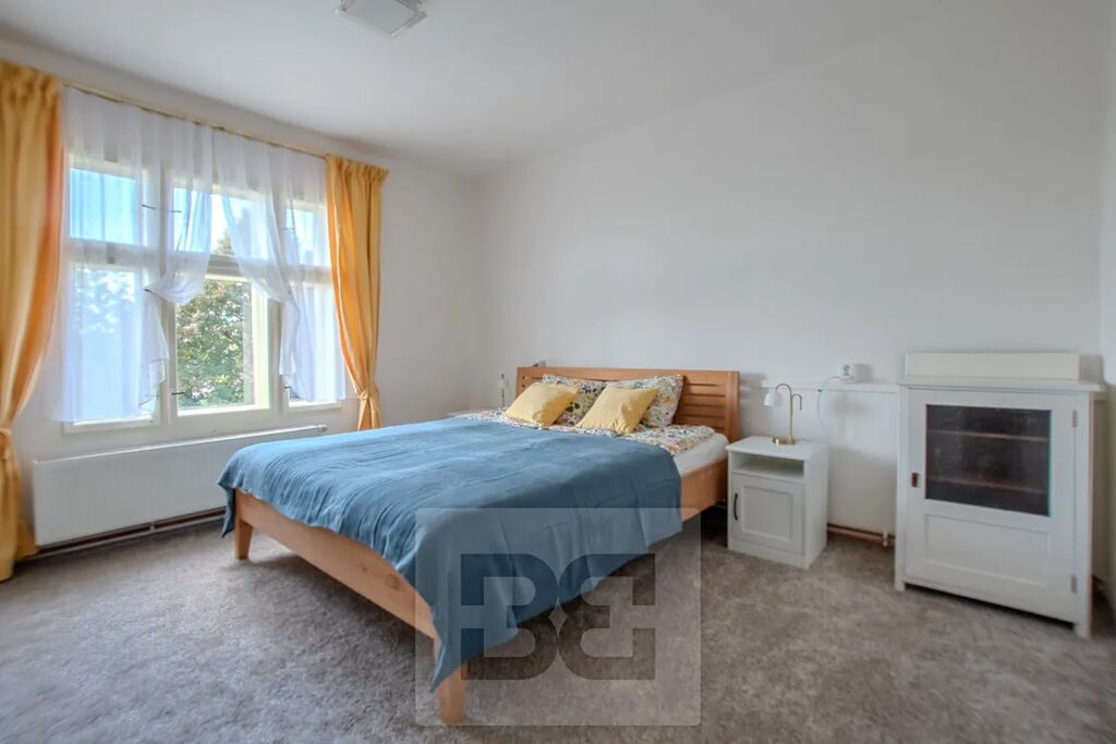 Ložnice je orientována na sever s příjemným výhledem do zahrady a je vybavena manželskou postelí, šatní skříní a komodou. Na ložnici navazuje koupelna se sprchovým koutem a toaletou.