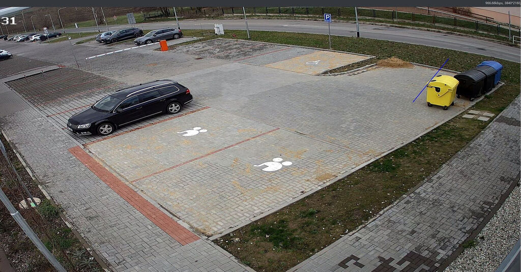 Celá část parkoviště je monitorovaná kamerovým systémem ze dvou budov. Příjezd na parkoviště je přes automatickou závoru viz. foto.