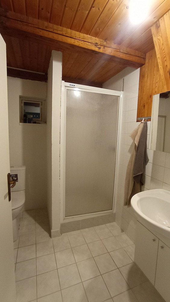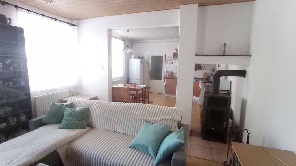 Dům disponuje prostornou kuchyní s jídelnou, která je spojená s prostorným obývacím pokojem, ložnicí a koupelnou se sprchovým koutem.