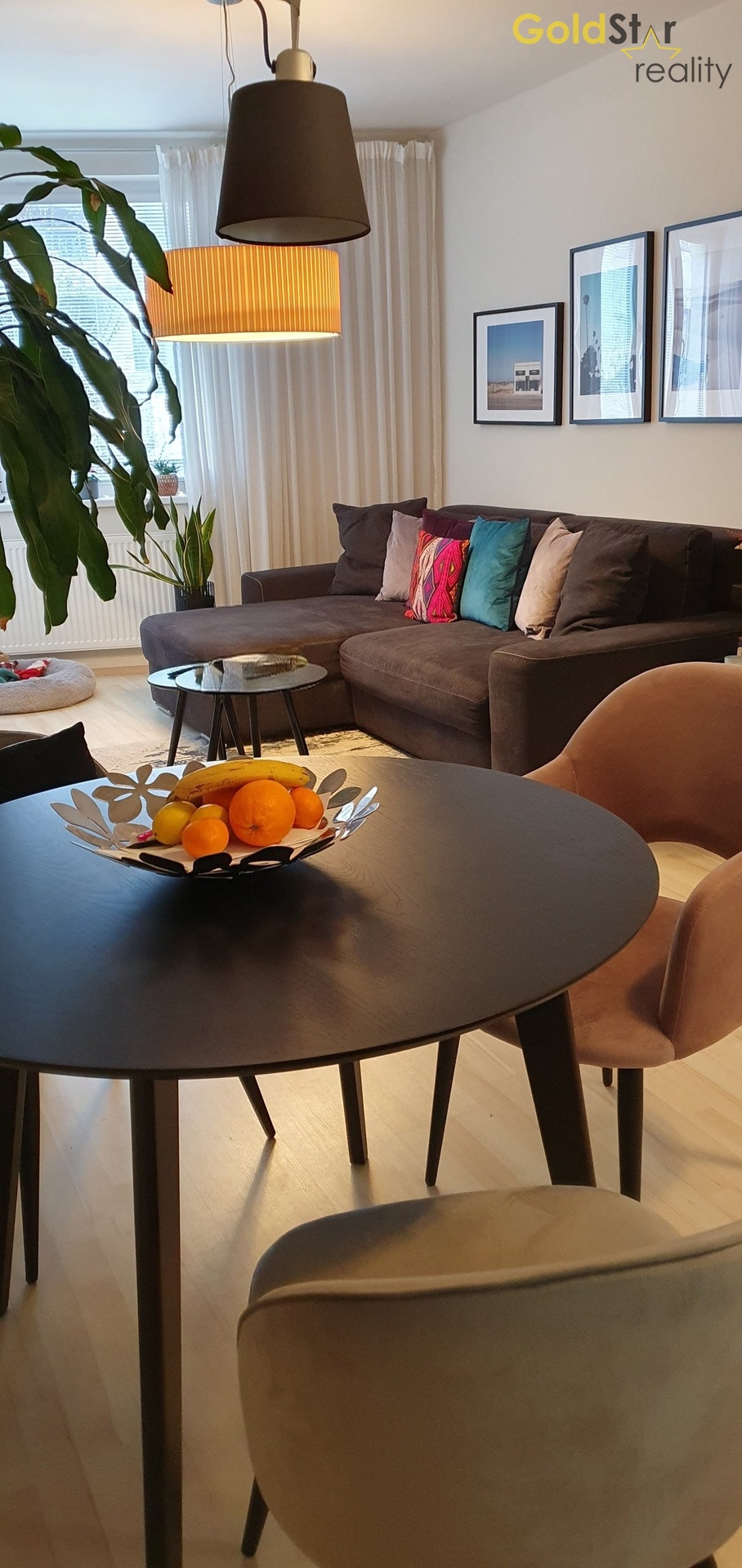 Dispozice je prakticky řešená – prostorný obývací pokoj s kuchyňským koutem, ložnice, koupelna s WC, chodba, komora a balkon. Díky tomu je byt ideální volbou jak pro mladý pár, rodinu s dítětem, tak i jako atraktivní investiční příležitost – pronájmy jsou zde dlouhodobě velmi žádané. Okna směřují na západ, což zaručuje dostatek denního světla i příjemné večerní posezení.