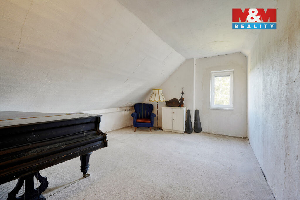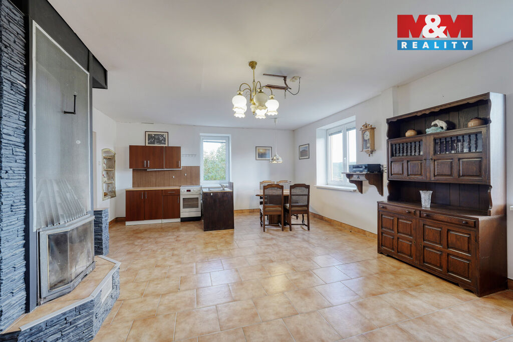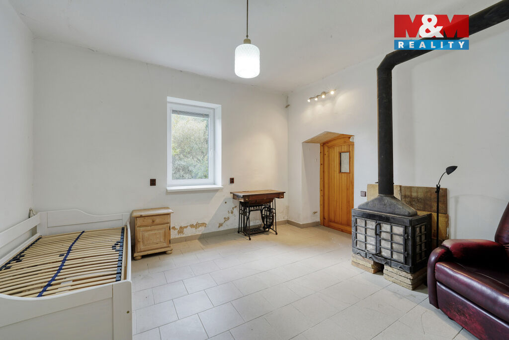 Nabízíme k prodeji chalupu o užitné ploše 172 m², umístěnou na pozemku o rozloze 3 645 m² v obci Chrášťovice, okres Plzeň-sever. Nemovitost je částečně rekonstruovaná – nová fasáda, plastová okna, koupelna, WC atd. Podkroví je připraveno k dokončení dle vlastních představ, což budoucímu majiteli poskytuje možnost dotvořit interiér podle vlastního vkusu. Chalupa je částečně podsklepená a součástí je garáž o velikosti 70 m². Vytápění je zajištěno kamny, zdroj vody tvoří kopaná studna, odpad je sveden do žumpy, elektřina je zavedena v rozsahu 220/380 V. K nemovitosti náleží rozsáhlý pozemek se zahradou a ovocným sadem, který poskytuje dostatek prostoru pro odpočinek, zahradničení či jiné využití. Obec Chrášťovice se nachází v malebném prostředí severního Plzeňska, obklopená přírodou. Veškerá občanská vybavenost je dostupná v obci Žihle vzdálené 5 km (obchody, škola, zdravotní péče, vlakové spojení). Pro více informací neváhejte kontaktovat makléře