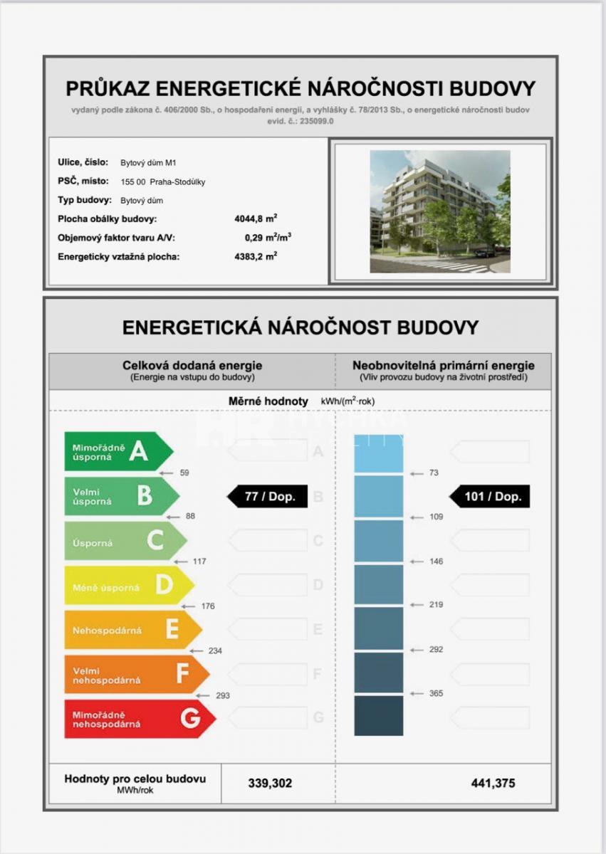 Ukazatel energetické náročnosti | 77 kWh/m2 za rok |