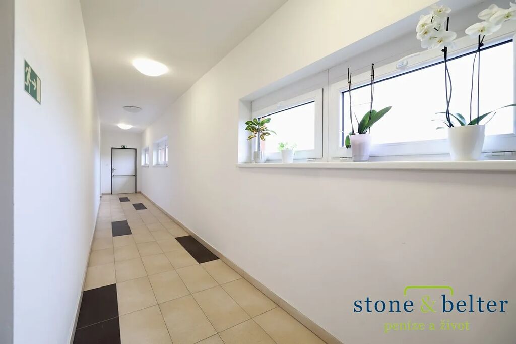Byt se nachází ve 4. nadzemním podlaží cihlového domu s výtahem a má krásný výhled do zeleného parku s jezírkem.