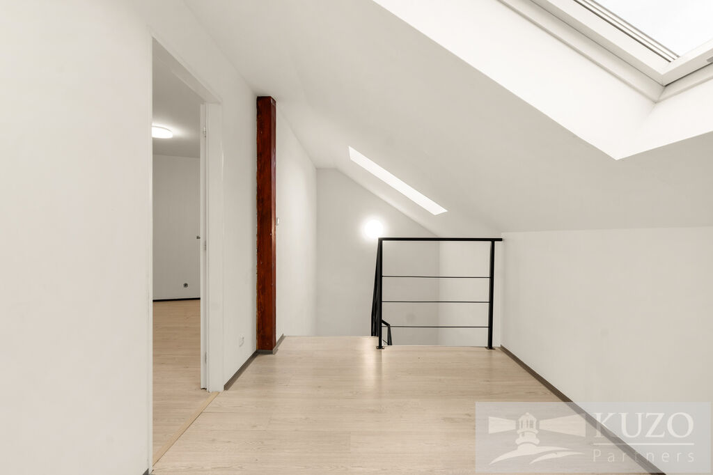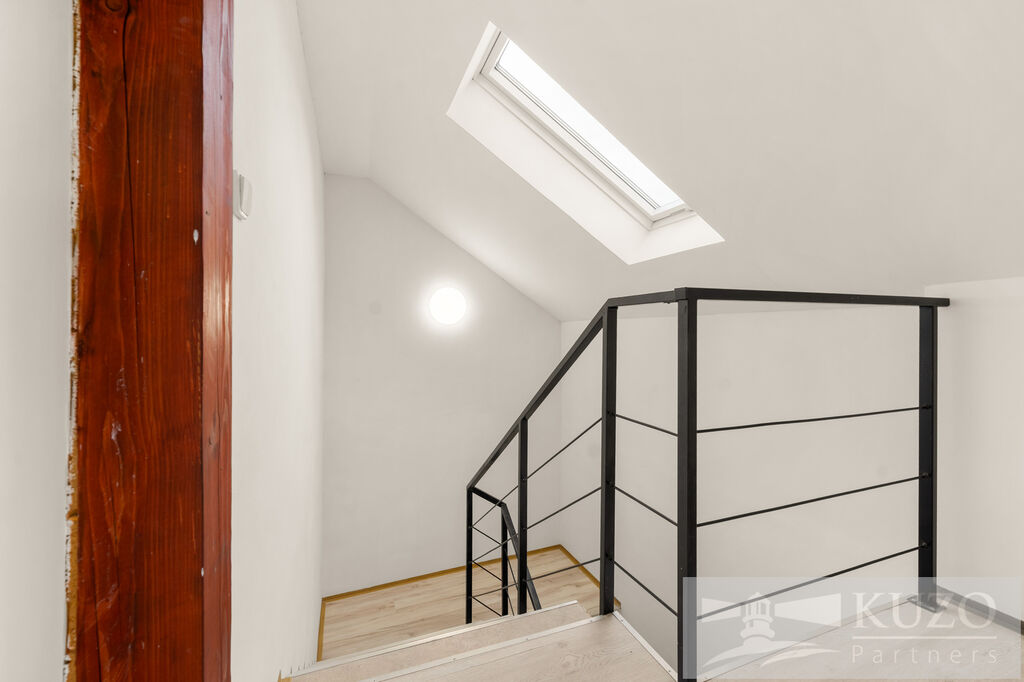 Hledáte klidné a prostorné bydlení s výbornou dostupností do měst, ale zároveň v obci s kompletní občanskou vybaveností? Pak je tento dvoupodlažní byt 3+kk o celkové podlahové ploše 122 m² v Byšicích, okrese Mělník, přesně pro vás! Tento byt nabízí maximální soukromí díky samostatnému vchodu, který se nachází na konci přístupové cesty, nalevo od společného vstupu k dalším bytům.