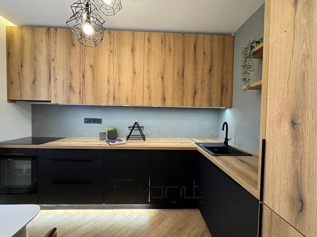 • Kuchyňská linka na míru včetně vestavných spotřebičů: lednice, myčka, digestoř, elektrická trouba a varná deska
