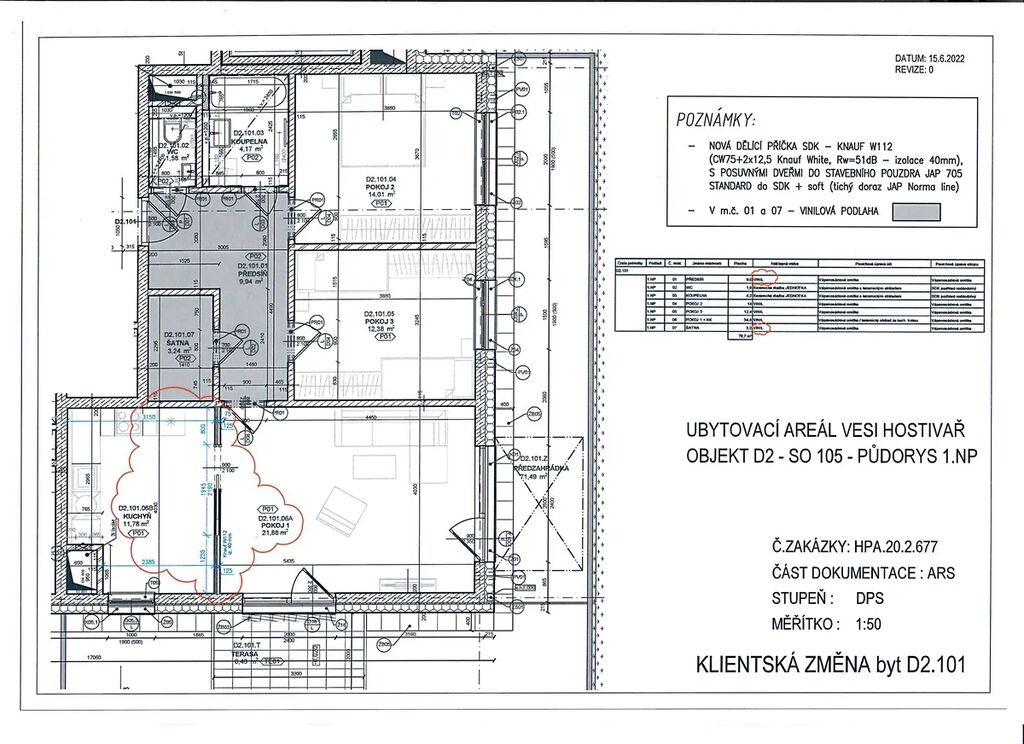 Prodej jedinečné, světlé apartmánové jednotky o dispozici 3 + 1 (na LV psáno jako jiný nebytový prostor) s tím, že dle kol. rozhodnutí jde o stavbu nazvanou ubytovací areál Vesi Hostivař s apartmánovými jednotkami k dlouhodobému ubytování, v novostavbě kolaudované v září 2023 s recepcí, s jednací místností a posezením, skládající se ze 4x místností o celkové podlahové ploše 85,1 m2 (dle prohlášení vlastníka), nacházející se ve 1. podlaží novostavby ubytovacího areálu Vesi Hostivař. Jednotka orientována na jihovýchod o dispozici 3+1 a celkové podlahové ploše 85,1 m2, se zahrádkou o velikosti cca 78 m2 s terasou cca 16 m2 a se sezonní zimní zahradou o velikosti cca 13,2 m2 (hliníková zimní zahrada od spol. Hobbytec s bezpečnostním sklem a integrovaným vývodem vody, o rozměrech 4 x 3,3 m2), komorou (sklep) umístěnou v 1. NP budovy o velikosti cca 4,2 m2 a podzemním garážovým stáním. Původně byla jednotka koncipována jako 3+kk, ale v rámci klientských změn byla developerem upravena na 3+1 tj. 4x místnosti - možnost úpravy zpět na 3+kk tj. 3x místnosti. Jednotka se skládá z předsíně s chodbou, 3x samostatných neprůchozích místností a 1x menší průchozí místnosti, oddělené od největší místnosti posuvnými dveřmi a plní funkci kuchyně, z koupelny s vanou, samostatného WC, komory a předzahrádky 78 m2. K jednotce náleží komora (sklep) 4 m2 a parkovací místo v garážích. V jednotce je instalována kompletní kuchyňská linka od spol. Ikea se spotřebiči (el. trouba s el. indukční varnou sklokeramickou deskou, digestoří a myčkou). Jednotka je provedena v nadstandartním provedení - v rámci klientských změn byly v jednotce provedeny nadstandartní úpravy jako zejména úprava na 3+1 včetně úpravy elektroinstalace a posuvných dveří, nadstandartní dlažby, obklady, dveře, zárubně, kování a sanita, provedení vinylové podlahy, zástěna v koupelně, příprava pro pergolu - betonový základ včetně podloží a včetně rozšíření terasy včetně pokládky nadstandartní dlažby na míru a obrubníků, venkovní elektroinstalace apod. V jednotce jsou instalovány 2x velké vestavěné skříně na míru a 1x skříň na míru na chodbě včetně botníku, na oknech závěsy a záclony na míru včetně konzolí a zákrytových lišt a ukončovacích prvků, dále i elektricky ovladatelné venkovní žaluzie na míru a osvětlení, v koupelně skříňka, zrcadlo, úchyty na osušky, na zahrádce 2x vývody vody a el. zásuvka, dále je domovní telefon s funkcí domácího vrátného, datová a TV zásuvka v místnostech, na WC i v koupelně ventilátor s doběhem, v místnostech fasádní větrací prostupy. Výborná dopravní dostupnost na metro C - Háje a metro A - Skalka a kompletní občanská vybavenost. Vhodné jednak pro obchodní i kancelářské účely, např. kancelář, sídlo firmy, ordinace, kosmetický salón, pro výuku jazyků a školení, provozovna, vzorkovna apod. tj. pro činnosti s poskytováním služeb méně hlučné povahy či k ubytovacím službám (celý komplex je kolaudován jako ubytovací zařízení). Autobusová zastávka Hostivařský hřbitov se nachází ve vzdálenosti cca 250 metrů. Energetická třída B - velmi úporná. Je možná koupě na firemní či hypoteční úvěr. K nastěhování dle dohody. Tuto jednotku, která svou dispozicí i standardem vybavení plně odpovídá standartním bytům, pouze z důvodu možností funkčního využití pozemků nelze označit jako byt. K ceně nutno připočítat + DPH 21 %. Plátci si mohou nárokovat zpět odpočet DPH v plné výši. Výhodou je však i fakt, že lze mít na této adrese i trvalý pobyt pro fyzické osoby, neboť je v komplexu 1x jednotka kolaudována jako bytová. Jedna z mála jednotek o dispozici 3+1 v novostavbě. Ideální např. pro spojení bydlení s podnikáním. Kamerový systém u recepce, u vjezdu a vchodu, vjezd přes závoru na čip, možnost venkovního parkování v komplexu pro návštěvy. Ideální poloha v rámci tohoto projektu, orientace do vnitrobloku i s částečným výhledem na les, jde o velmi světlou jednotku s polohou, která zaručuje velkou světlost v jednotce a zároveň i velkou bezpečnost (na rozdíl od mnoha jednotek v tomto projektu, orientovaných na les). Na zahrádce, která má i vlastní vstup i přes vrátka do vnitrobloku - vyměněná původní zemina za novou a kvalitní, částečně osázeno, květináče osázeny růžemi, které tvoří v létě květinovou bariéru s plotem sousední jednotky (jediný přímý soused). Klidné místo u lesa, v blízkosti Hostivařské přehrady, lehce dosažitelné jak autem tak i MHD. Na LV psáno jako jiný nebytový prostor. K nastěhování dle dohody.