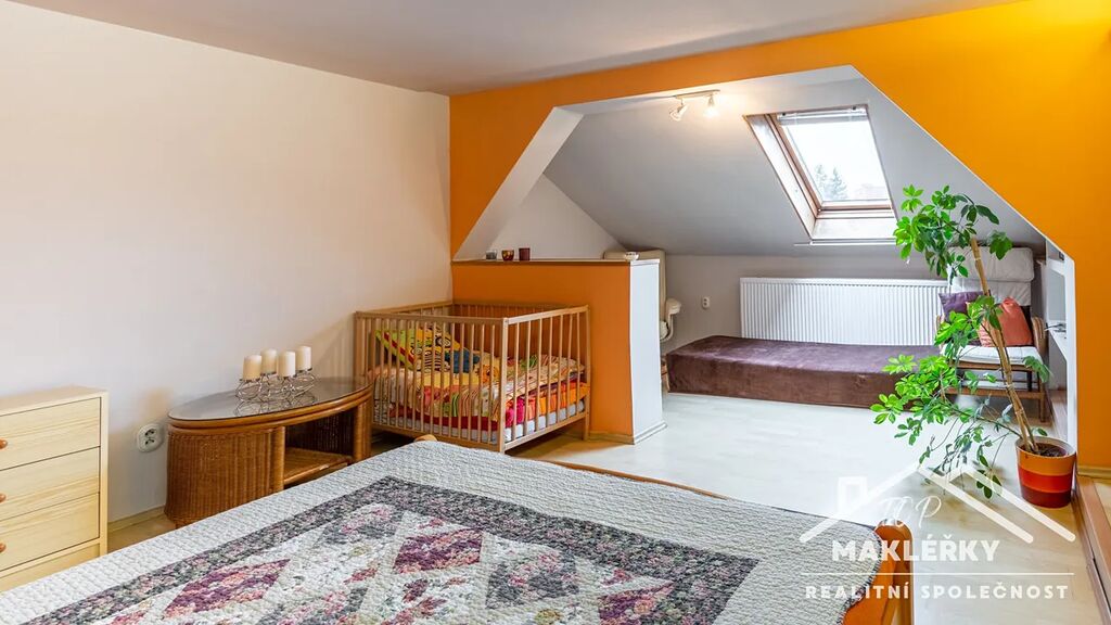 - druhý celek tvoří jednotka umístěná v podkroví v pravé části domu. Disponuje jednou místností, halou s kuchyňským koutem a koupelnou s WC;