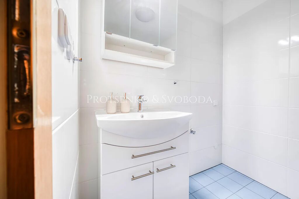Interiér je navržen s důrazem na komfort a funkčnost. Díky plně vybavené kuchyni s myčkou a lednicí je prostor ideální nejen pro běžný provoz, ale i pro menší setkání. Praktická velká vestavěná šatní skříň poskytuje dostatek úložného místa a udržuje kancelář dokonale reprezentativní. K dispozici jsou také dva samostatné záchody a koupelna, což zajišťuje pohodlí pro tým i návštěvy. Celkovou atmosféru dotváří kvalitní dřevěné podlahy, které prostoru dodávají hřejivost a eleganci.