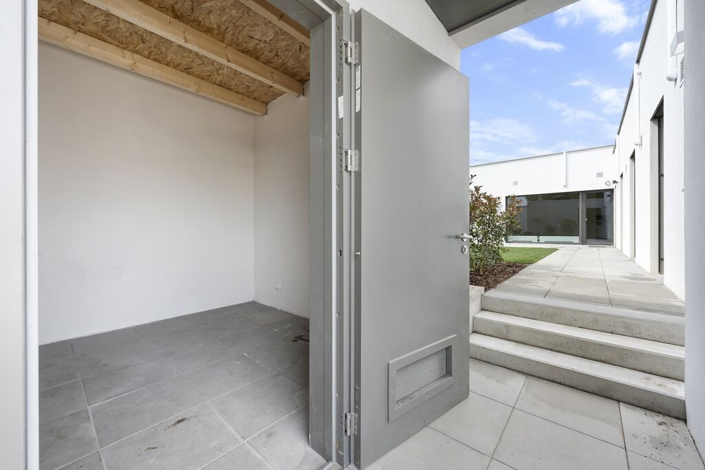 Nový jednopodlažní dům o dispozici 5+kk (160m2) + 11m2 venkovní sklad, vstupní portál 5m2 a dvě parkovací stání.