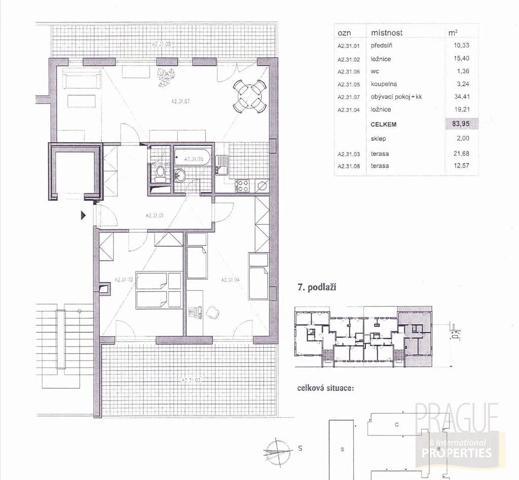 Nabízíme k prodeji byt v osobním vlastnictví o dispozici 3+kk s dvěma terasami, garážovým stáním a sklepem. Celková plocha bytu činí 118,3 m² včetně terasy o velikosti 21,68 m² a druhé terasy o 12,57 m². Byt se nachází v 7. nadzemním podlaží moderního a velmi klidného domu s krásným výhledem do okolí.