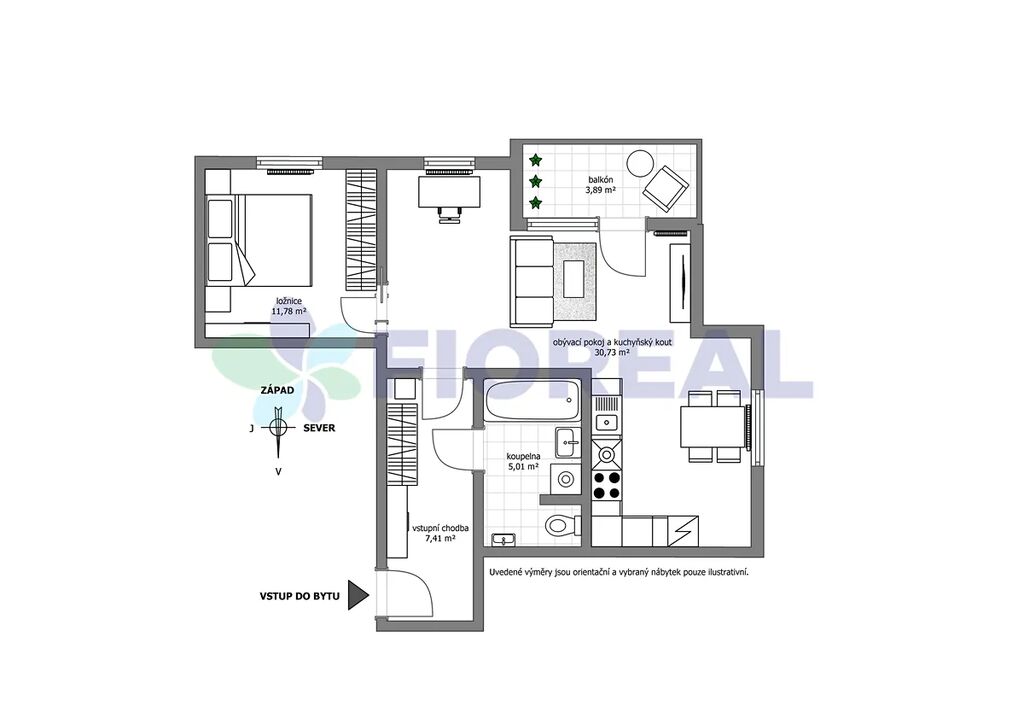 Byt je orientován na západ (3 okna) a sever (1 okno), ale nemusíte mít obavy z horka každé okno má předokenní roletu pro dokonalé zatemnění a ochranu před přehřátím, navíc má byt již udělanou příprava na klimatizaci!