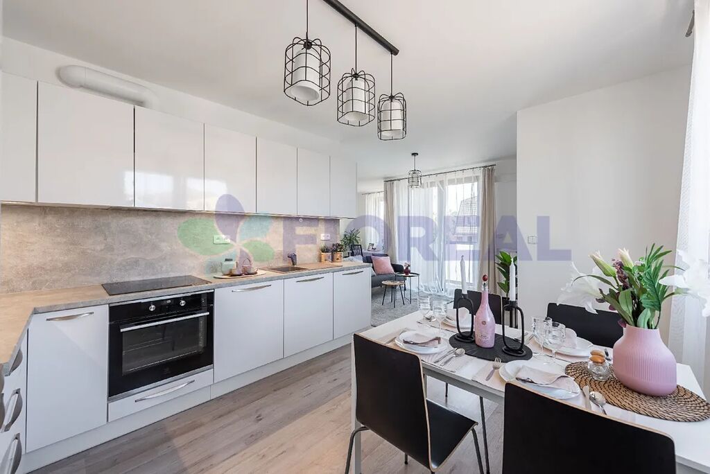 Nabízený byt 2+kk disponuje velkorysým obývacím pokojem o ploše 30,73 m², který vytváří jedinečný pocit prostoru a volnosti. Díky promyšlenému uspořádání lze při troše fantazie dispozici upravit na 3+kk, což poskytuje flexibilitu pro budoucí potřeby rostoucí rodiny nebo možnost vytvoření pracovny, ve fotogalerii najdete plánek aktuální dispozice bytu. V kuchyňské části dominuje krásná kuchyňská linka včetně kompletních vestavných spotřebičů (myčka nádobí, lednice, mrazící box, varná deska, digestoř).