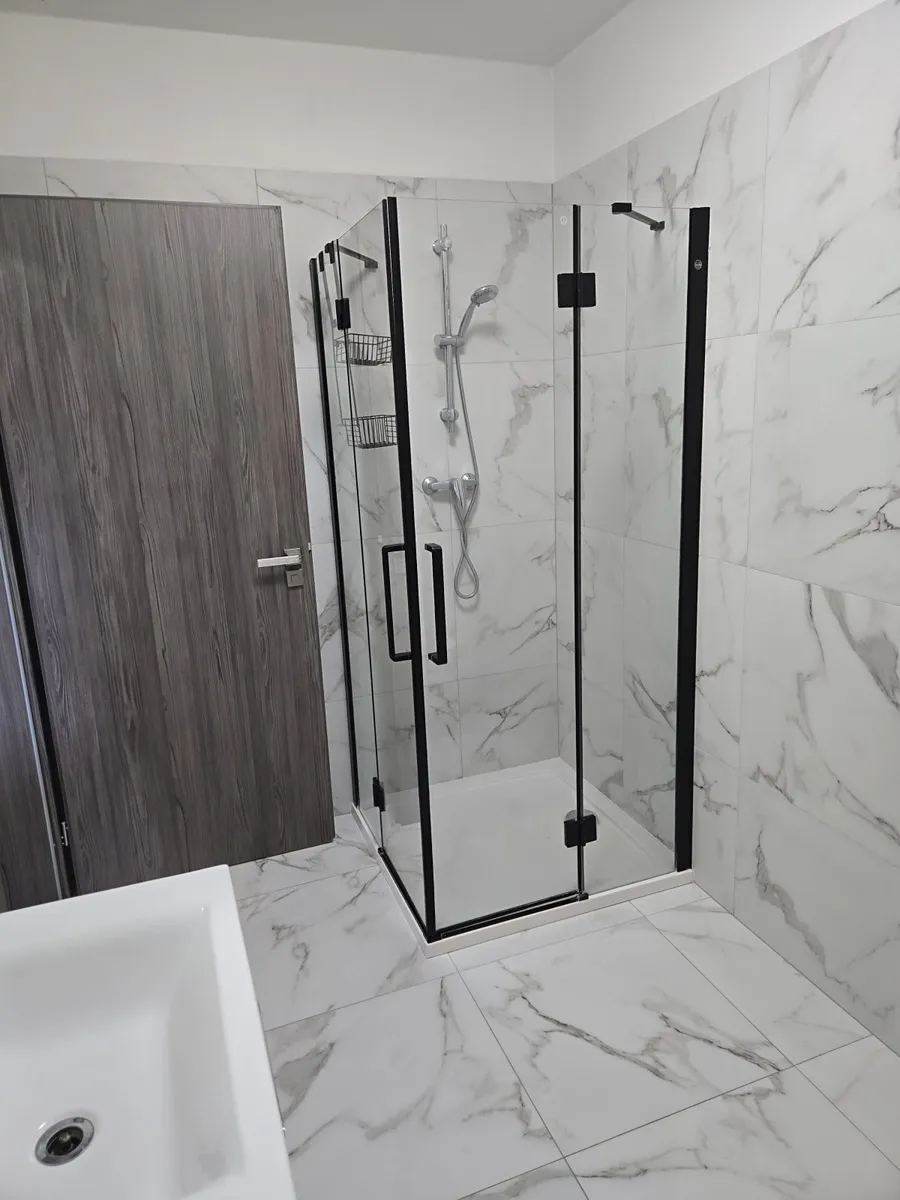 Moderní trendy bydlení - vinylové podlahy, přiznané betonové stropy, designové interiérové dveře, moderní svítidla, mramorové obložení koupelny, optické datové kabely, okenní trojskla.