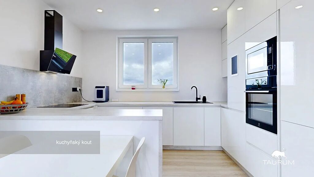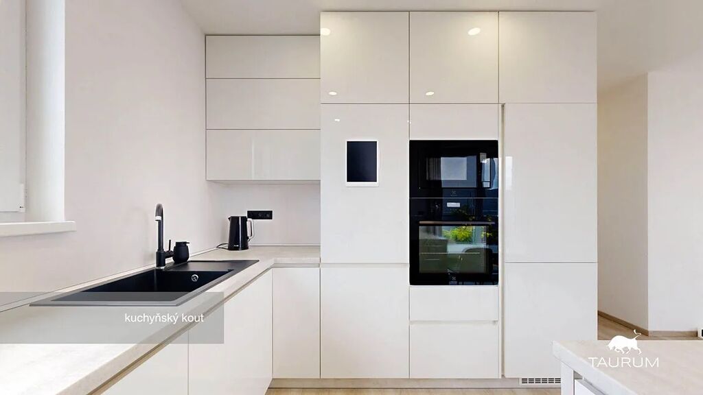 Byt je vybavený kuchyňskou linkou se zabudovanými spotřebiči značky Electrolux, pracovní deskou Egger, digestoří s filtrem a indukční varnou deskou. Byt má velmi moderní styl, je vzdušný a vkusně vybavený.