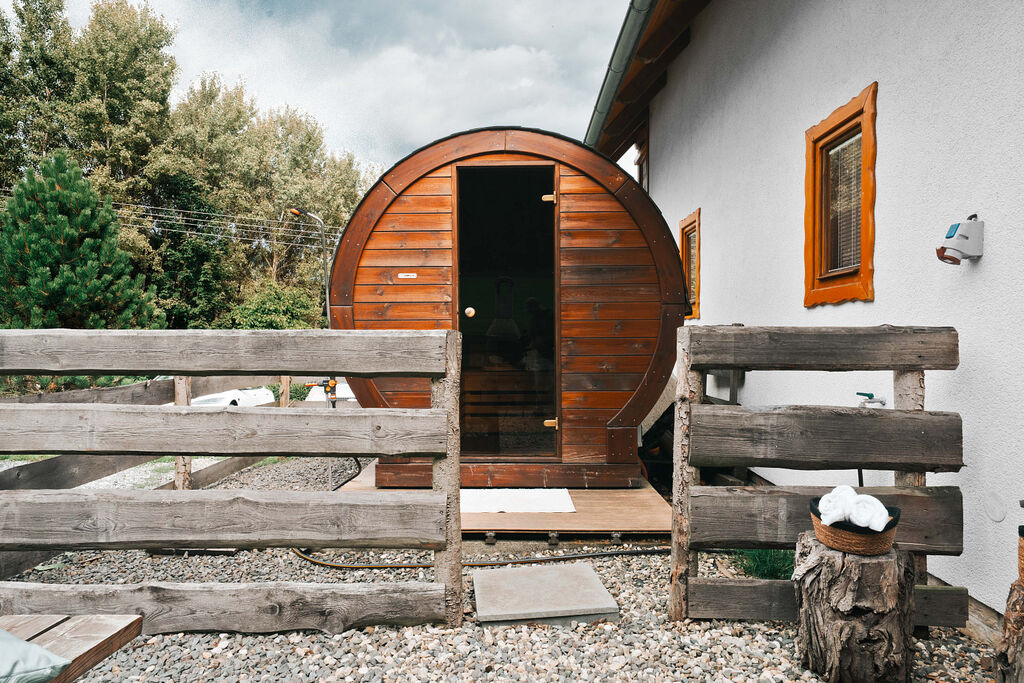 Sudová sauna hned vedle chalupy – ideální po výletech i v chladných dnech.