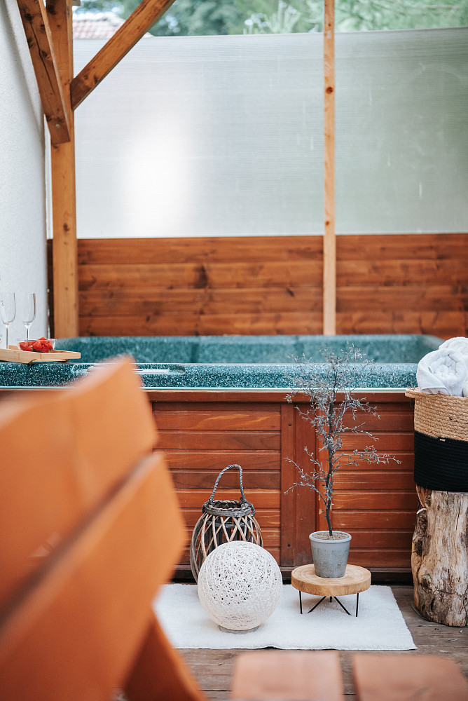 Vířivka na kryté terase – relax kdykoli během roku.