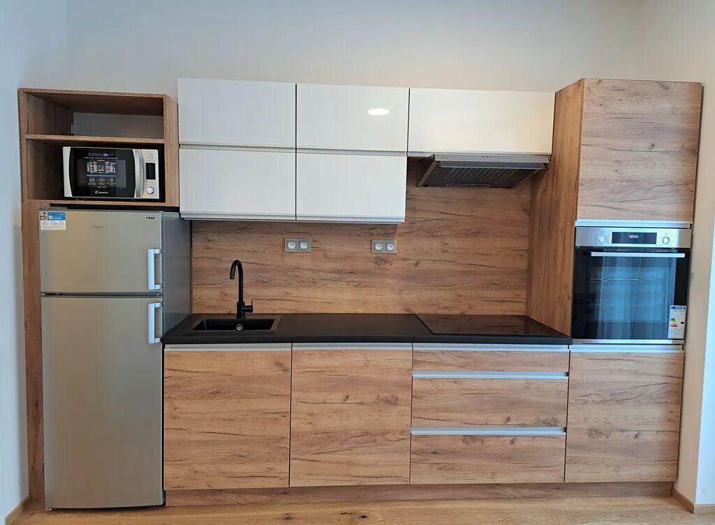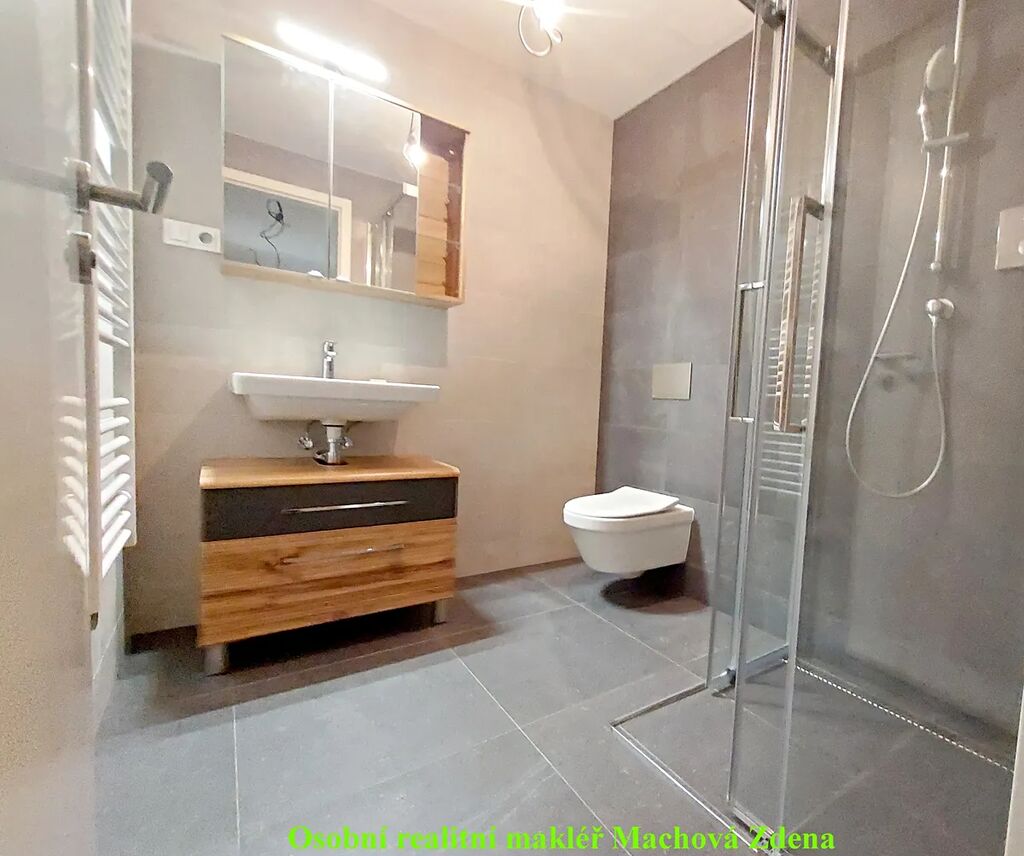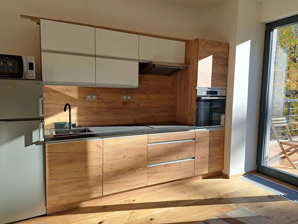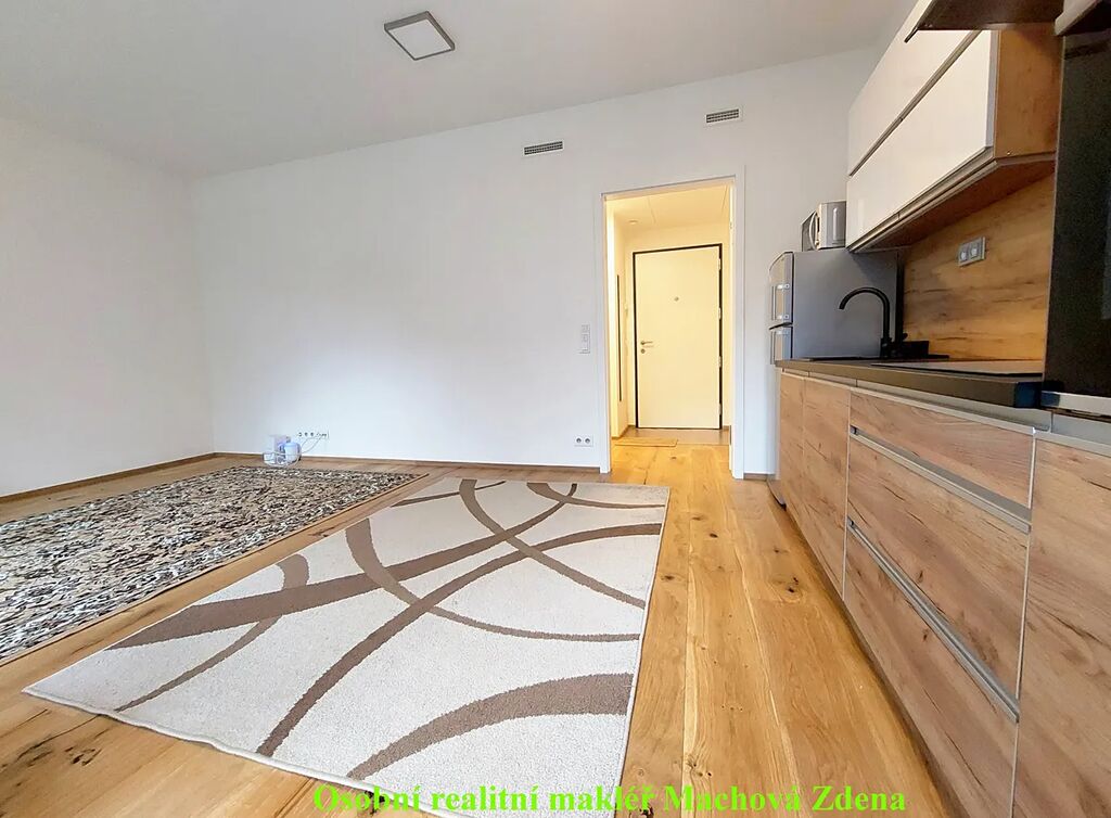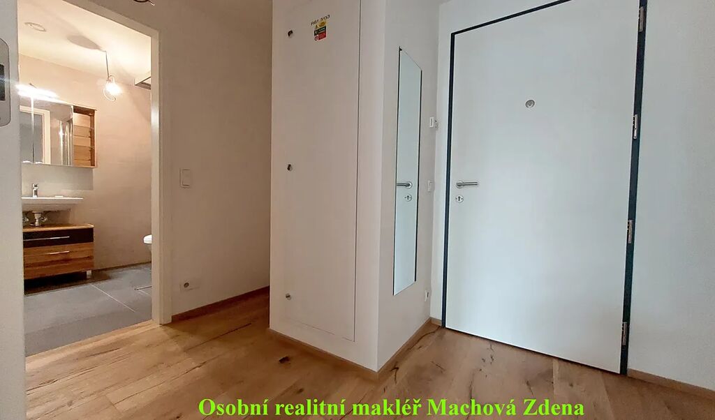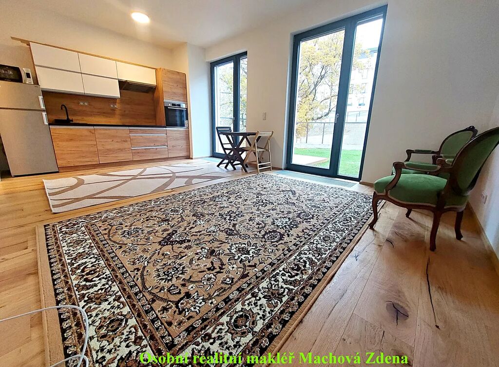 Krásný světlý obývací prostor (22,5m2) je opatřen novou kvalitní kuchyňskou linkou s novými spotřebiči v záruce (kombinovaná lednice, mikrovlnná trouba, myčka, indukční varná deska, digestoř, vestavěná trouba) k dispozici dvě stylová křesla. Kvalitní dubová dřevěná vícevrstvá podlaha o tloušťce 13 mm si díky lakovanému povrchu zachovává krásný vzhled přírodního dřeva. Dřevěná okna zasklená izolačním trojsklem mají venkovní elektricky ovládané žaluzie, vytápění umístěné pod okny je zajištěno teplovodními podlahovými konvektory. Koupelna (4,1m2) se sprchovým koutem a s WC je vybavena nástěnnou skříňkou se zrcadlem a skříňkou pod umyvadlo. Kvalitní obklady značky Abitare s jemným povrchem imitují přírodní kámen. Topení v koupelně je zajištěno elektrickou topnou rohoží a elektrickým žebříkem. Do bytu vedou vstupní jednokřídlé dveře s bezpečnostním zámkem třídy 3 a kukátkem, protipožární. V chodbě (6,7m2) i v celém bytě je instalováno moderní osvětlení. Byt ocení nájemce, který má v oblibě moderní inteligentní domácnost s možností dálkového ovládání.